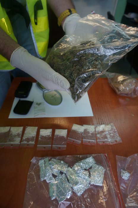 Policjanci zwalczający przestępczość narkotykową częstochowskiej komendy ustalili, że 22-letni częstochowianin może posiadać duże ilości środków odurzających. Te ustalenia potwierdziły się, gdy przeszukali samochód, do którego akurat wsiadł. W trakcie przeszukania busa, w którym znajdowało się trzech mężczyzn, śledczy znaleźli torbę z narkotykami oraz dokłądne wagi elektroniczne. Łącznie mundurowi zabezpieczyli ponad 50 "działek" dilerskich marihuany, 170 porcji pochodnej amfetaminy oraz kilka „znaczków” LSD. Łączna wartość zabezpieczonych narkotyków szacowana jest na kwotę ponad 2 tys. zł. Policjanci zabezpieczyli również wagi elektroniczne, na których najprawdopodobniej mężczyzna odważał narkotyki i poporcjowane przygotowywał do wprowadzenia na rynek. Ten trop doprowadził śledczych do ustaleń, że zatrzymany sprzedawał narkotyki. Częstochowianin usłyszał zarzuty odpłatnego udzielania marihuany i amfetaminy innej osobie, a także nieodpłatnego „częstowania” marihuaną. Najprawdopodobniej ten proceder trwał od 2012 roku. Czynności w tej sprawie są nadal w toku. Wczoraj 22-letni częstochowianin usłyszał cztery zarzuty popełnienia przestępstw narkotykowych, za które grozi mu do 10 lat więzienia. Dzisiaj o losie zatrzymanego zadecyduje prokurator a później sąd.