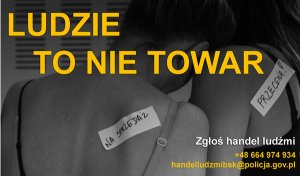 Komenda Główna Policji utworzyła skrzynkę e-mailową i infolinię, dzięki którym każdy, kto ma informacje o przypadkach handlu ludźmi, będzie mógł się skontaktować z policjantami. Pisząc na adres handelludzmibsk@policja.gov.pl. lub dzwoniąc pod numer 664 974 934, można zapobiec ludzkim tragediom. Nie bądźmy obojętni!