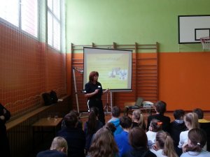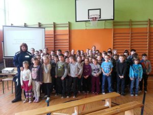 Podczas zajęćmundurowych z wydziału zwalczającego przestępczośc gospodarczą bardzo szczegółowo omówił problemy związane z cyberprzemocą, takie jak zniesławienie, znieważenie, włamania do sieci danych. Zdefiniowano zjawisko cyberprzemocy jako przemocy wobec drugiej osoby z użyciem technologii komunikacyjnych i informacyjnych. Młodzież została uświadomiona, iż , że internet, poczta elektroniczna, serwisy społecznościowe i komunikatory są często wykorzystywane do straszenia, szantażowania, nękania lub rozsyłania kompromitujących filmików lub zajęć innych osób. Mundurowi poinformowali uczestników spotkania, gdzie należy szukać pomocy i informacji w przypadku nadużyć w sieci internetowej. Wspólnie policjanci podkreslali, iż akty cyberprzemocy, czyli przemocy z użyciem mediów elektronicznych, choć dokonywane w witrualnym świecie, potrafią realnie wyrządzić bardzo dużą krzywdę. Dodatkowo, w ramach akcji "Bezpieczne Ferie" policjanci przypomnieli o bezpiecznym wypoczynku oraz omówili zasady przestrzegania w czasie zabaw na śniegu czy lodzie. W formie zabawy przeprowadzona została scenka z udzialem dzieci, aby pokazać w jaki sposób powinno się zachować gdy nieletni będzie świadkiem przestępstwa lub samo będzie w niebezpieczeństwie.