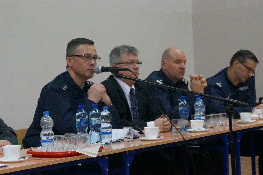W debacie wzięli udział także przedstawiciele władz powiatu i gminy Koniecpol, v-ce Starosta powiatu częstochowskiego Henryk Kasiura oraz Burmistrz Miasta i Gminy Koniecpol Ryszard Suliga. Spotkanie rozpoczęło się prezentacją multimedialną, obrazującą stan bezpieczeństwa w gminie Koniecpol oraz prezentacją w zakresie zdarzeń drogowych, do których doszło na terenie gminy. Naczelnik Wydziału Ruchu Drogowego Komendy Miejskiej Policji nadkom. Zbigniew Nicpoń omówił przyczyny i skutki zdarzeń drogowych. Następnie rozpoczęła się dyskusja, w której kolejne osoby zabierały głos i przekazywały swoje uwagi, spostrzeżenia i sugestie w tym zakresie. Rozmawiano nad sposobami, metodami i formami poprawy poczucia bezpieczeństwa.