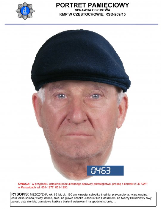 Śledczy z wydziału zwalczającego przestępczość przeciwko mieniu prowadzą dochodzenie w sprawie oszustwa, do jakiego doszło 30 czerwca 2015 roku w kantorze wymiany walut przy Al. Najświętszej Marii Panny Częstochowie. Jak ustalono, nieznany mężczyzna wieku około 60-65 lat wzrostu około 160 cm, z zamiarem osiągnięcia korzyści majątkowej, wprowadził w błąd pracownika tej placówki, co do chęci zakupu 40 tys. euro. Tym samym doprowadził właścicielka kantoru do strat w wysokości 186 tys. złotych.