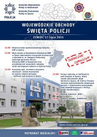 Obchody policyjnego święta rozpoczną się o 11.00 pod budynkiem KPP w Żywcu przy al. Piłsudskiego 52, gdzie nastąpi uroczystość otwarcia obiektu po remoncie. Kolejnymi punktami programu są: przemarsz w zorganizowanej kolumnie do żywieckiej konkatedry i msza z elementami policyjnego ceremoniału, z towarzyszeniem Orkiestry KWP w Katowicach i kompanii honorowej.