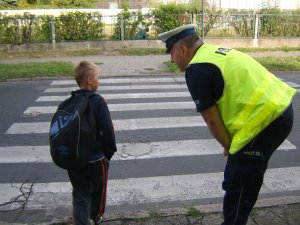 Dbając o prawidłowe przechodzenie przez drogę, uczestnicy akcji przypominali najmłodszym o bezpiecznych postawach na drodze, przechodzeniu przez drogę w miejscu dozwolonym oraz tym jak ważne jest noszenie elementów odblaskowych.