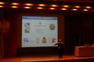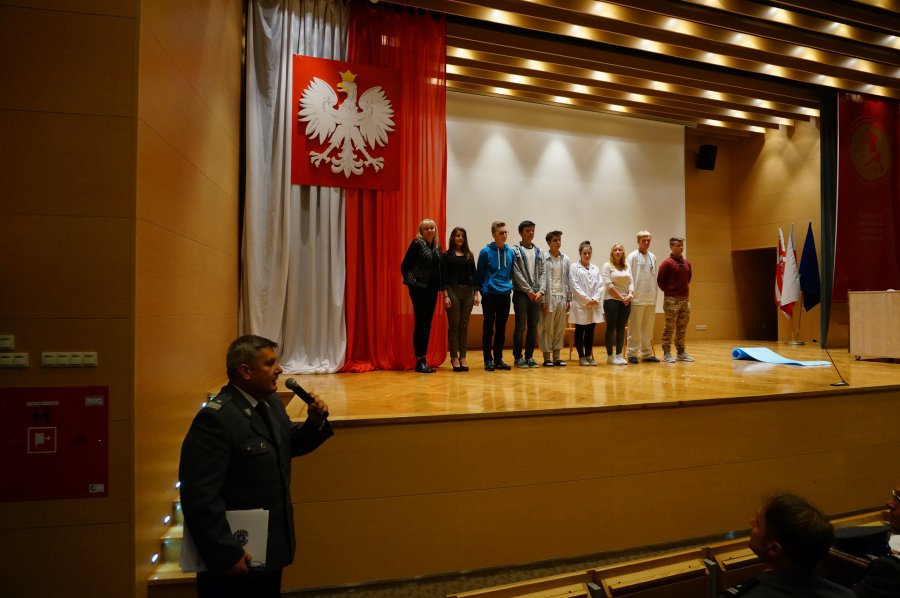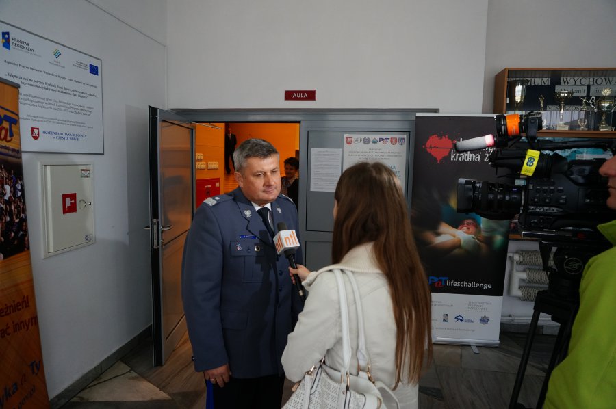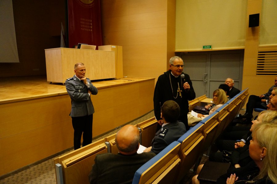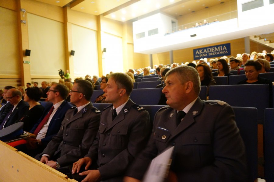 Na początku organizatorzy spotkania, w tym nadinspektor w st. spocz. Tadeusz Budzik oraz Komendant Miejski Policji w Częstochowie podinsp. Sławomir Litwin przywitali zaproszonych gości - I Zastępcę Śląskiego Komendanta Wojewódzkiego Policji insp. Romana Rapsztyn, insp. Grzegorz Jach z Komendy Głównej Policji, Ekscelencję Antoniego Długosza, Rektora AJD Dr hab. Inż. Prof. Zygmunta Bąka, dyrektorów szkół i placówek, osoby reprezentujące instytucje z miasta i powiatu częstochowskiego, a także reprezentantów służb mundurowych, instytucji i podmiotów współpracujących na rzecz bezpieczeństwa dzieci i młodzieży