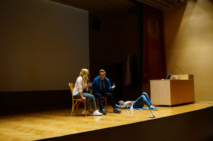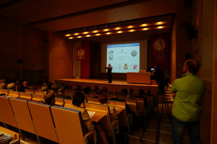 We wtorek w auli Akademii im. Jana Długosza po raz drugi odbyły się warsztaty profilaktyczne dla dyrektorów szkół i placówek oświatowych regionu częstochowskiego pt. „Bezpieczna szkoła - Bezpieczni uczniowie - Bezpieczna przyszłość”. Celem warsztatów było zwrócenie szczególnej uwagi na bezpieczeństwo oraz na zagrożenia na jakie w dzisiejszych czasach narażeni są najmłodsi. W ramach spotkania oprócz prelekcji przedstawiono spektakl pt. „Spisek” przygotowany przez częstochowską grupę PaT.