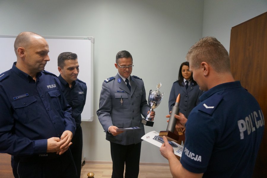 Podczas wtorkowej odprawy służbowej, Komendant Miejski Policji w Częstochowie podinsp. Sławomir Litwin złożył gratulacje za osiągnięty wynik sportowy oraz wyróżnił funkcjonariuszy nagrodą motywacyjną.