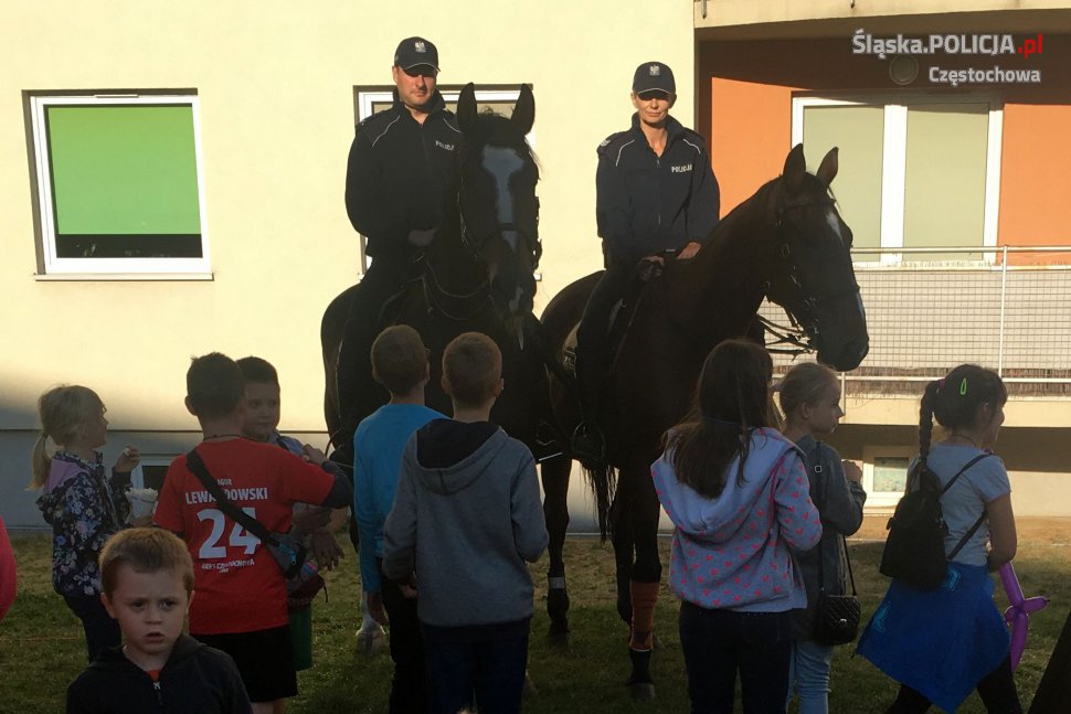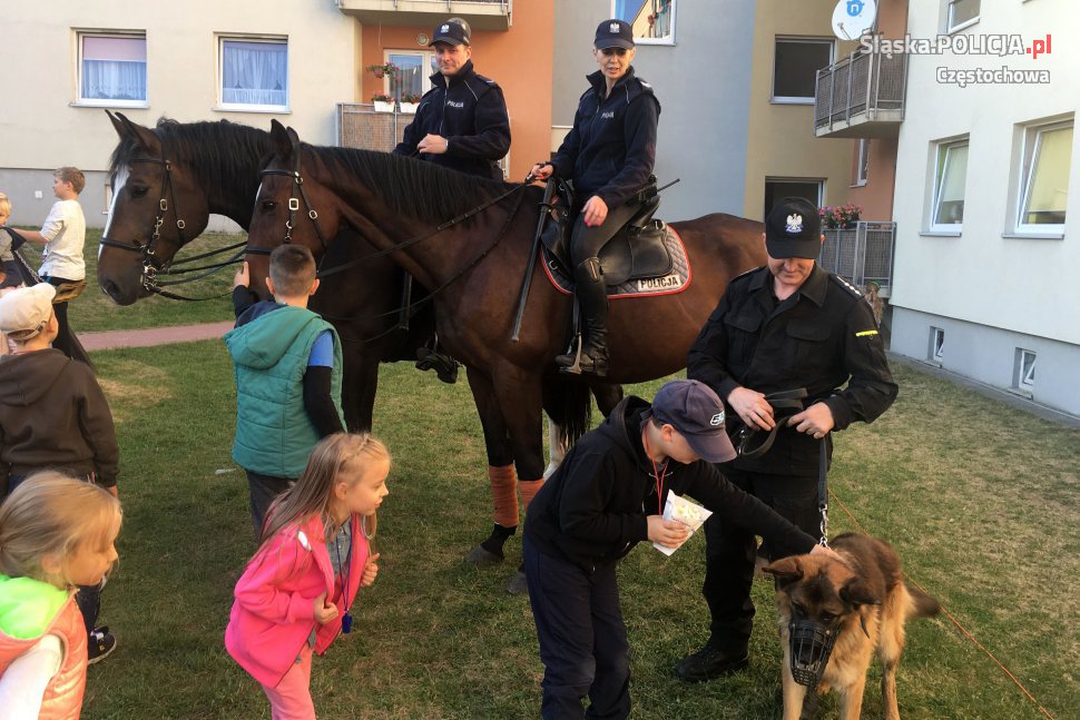 W częstochowskiej dzielnicy Północ odbyła się impreza plenerowa „Dni Sąsiadów”. Policjanci z zespołu konnego i przewodnik z psem patrolowo-tropiącym dbali o to, aby mieszkańcy miasta czuli się bezpiecznie i nie dochodziło do zakłóceń spokoju i porządku. Ich obecność wzbudziła jak zwykle spore zainteresowanie, szczególnie najmłodszych, którzy chętnie podchodzili do stróżów prawa i policyjnych czworonogów. Mundurowi opowiadali o swojej pracy, tłumaczyli dzieciom jak wygląda służba „w siodle” oraz jakie zadania ma policyjny pies. Takie spotkania są też świetną okazją, aby przekazać dzieciom jak ważne jest właściwe traktowanie i dbanie o zwierzęta, które ma się pod swoją opieką.