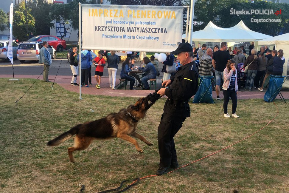 Policjanci z częstochowskiego zespołu konnego oraz przewodnik z psem służbowym pilnowali porządku na pikniku rodzinnym „Dni Sąsiadów”. Sierż. szt. Agnieszka Mordal na koniu Hamisch, sierż. Maciej Połcik na koniu Blue Beker i st. asp. Paweł Maj z policyjnym psem Brazylem dbali o bezpieczeństwo mieszkańców Częstochowy. Mundurowi opowiadali też o swojej pracy i chętnie pozowali do pamiątkowych zdjęć.