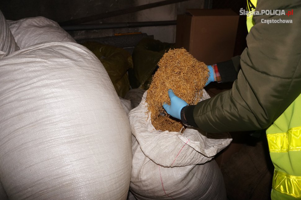 Częstochowscy policjanci zatrzymali mężczyznę, który na terenie swojej posesji posiadał łącznie prawie 900 kg tytoniu i 50 tys. papierosów bez polskich znaków akcyzy. Obliczono, że straty skarbu państwa, powstałe w wyniku uszczuplenia podatku akcyzowego w tym przypadku wynoszą przeszło 570 tys. zł. Zatrzymany może trafić do więzienia nawet na 3 lata.