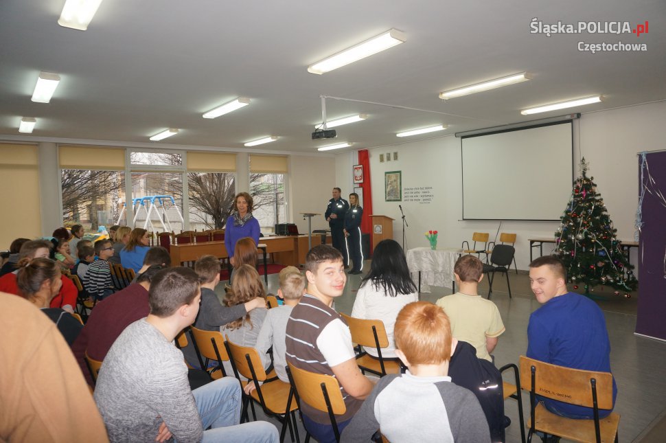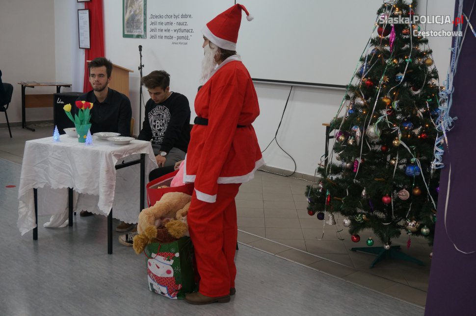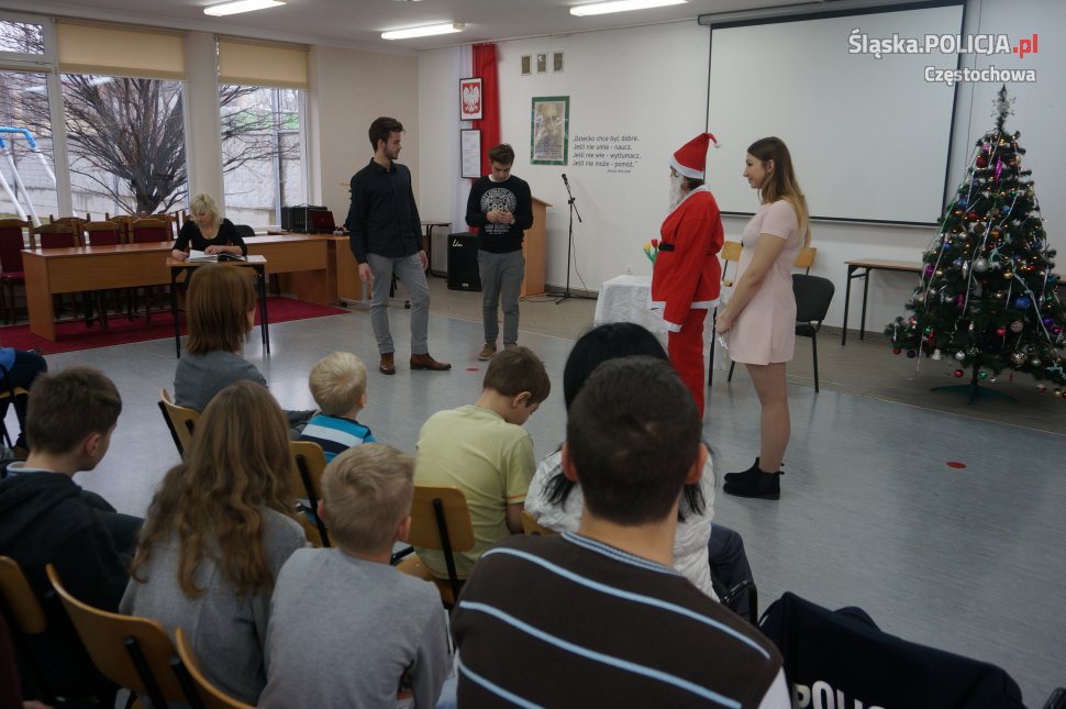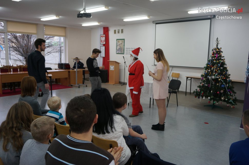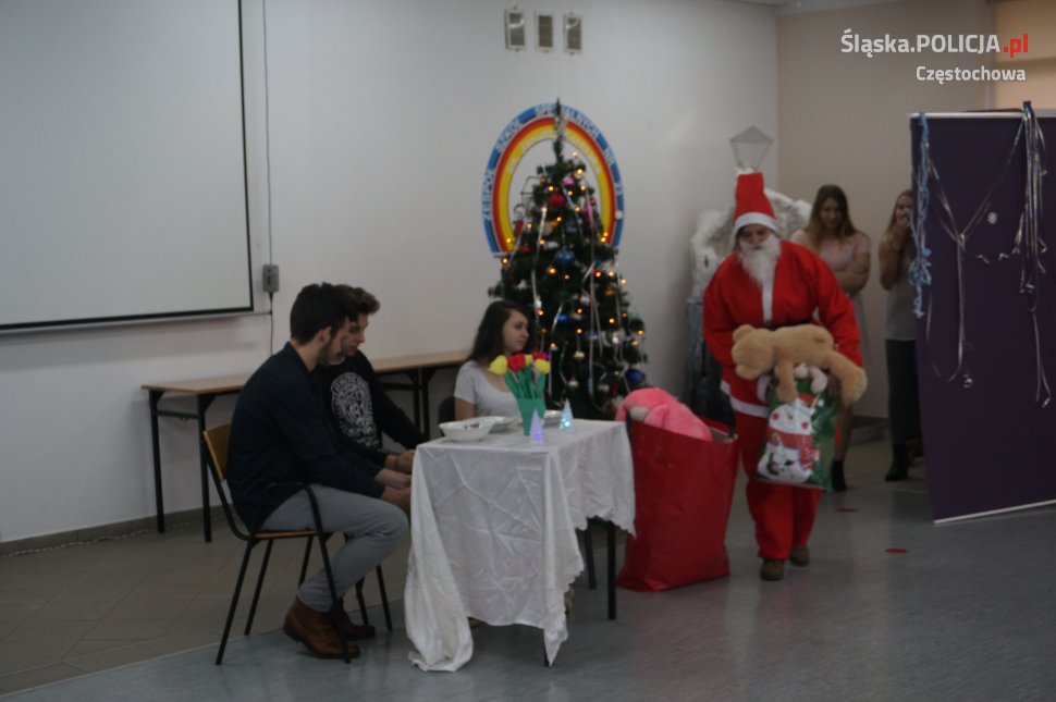 Dzisiaj młodzież z częstochowskiej grupy PaT oraz studenci Akademii im. J. Długosza, działający w ramach deklaracji akademickiej Pat, przygotowali dla dzieci ze Szkoły Specjalnej w Częstochowie, mikołajkowy spektakl "Śnieżynkowe Święta" W realizacji programu pomagali policjanci z wydziału prewencji częstochowskiej komendy.