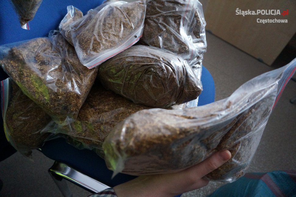 Policjanci z częstochowskiego wydziału do walki z przestępczością gospodarczą zatrzymali 59-letniego mężczyznę podejrzanego o posiadanie 19,5 kg tytoniu bez polskich znaków akcyzy. Jak ustalili śledczy właściciel nielegalnego towaru naraził Skarb Państwa na straty przekraczające 15 tys. zł.