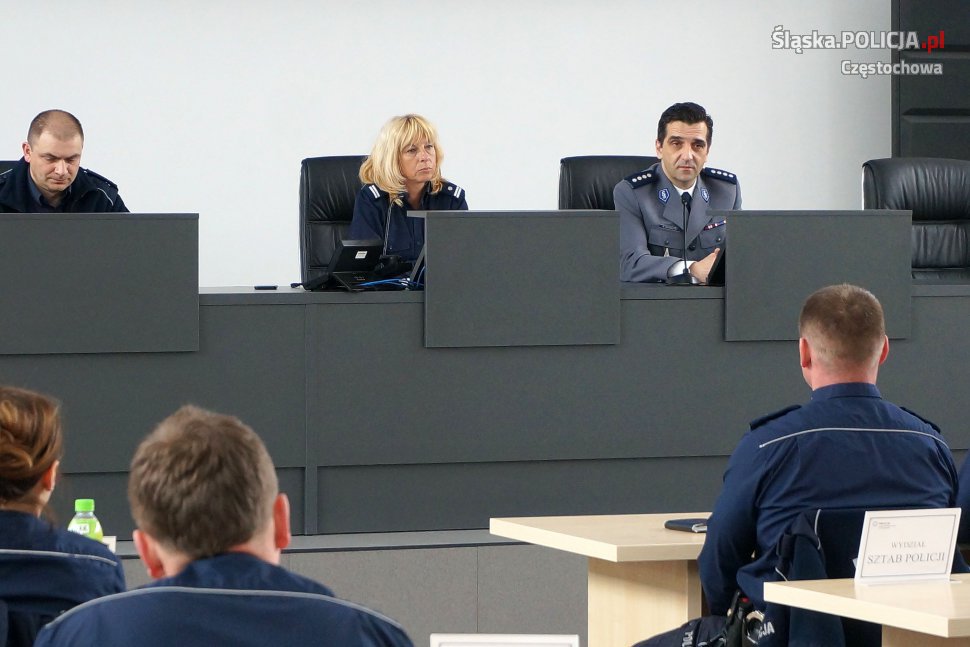 Wczoraj w Komendzie Miejskiej Policji w Częstochowie odbyło się spotkanie kierownictwa częstochowskiej jednostki z dzielnicowymi. Na terenie garnizonu częstochowskiego funkcjonuje 11 komisariatów, w których służbę pełni 91 dzielnicowych. Pełniący obowiązki Komendanta Miejskiego Policji w Częstochowie nadkom. Dariusz Kiedrzyn wraz z Naczelnikiem Wydziału Prewencji podinsp. Joanną Lazar systematycznie monitorują proces wdrażania nowych założeń w służbie dzielnicowych. Stróże prawa podzielili się podczas spotkania swoimi spostrzeżeniami dotyczącymi realizacji przez nich założeń programu „Dzielnicowy bliżej nas”, dzięki czemu udało się ustalić, jak w praktyce przedstawia się sposób realizacji nałożonych na funkcjonariuszy obowiązków. Nadkom. Dariusz Kiedrzyn podkreślił wielokrotnie, że rolą bezpośrednich przełożonych dzielnicowych jest odciążenie ich od innych zadań wykonywanych poza rejonem i zapewnienie ich widocznej obecności w terenie, aby mieszkańcy Częstochowy i okolic czuli się bezpiecznie w miejscu swojego zamieszkania, wiedzieli kto jest ich dzielnicowym oraz aktywnie korzystali z aplikacji „Moja Komenda” i Krajowej Mapy Zagrożeń Bezpieczeństwa.