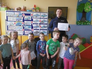 W trakcie spotkania policjanci wręczyli również nagrody dla dzieci które najlepiej spisały sie podczas przeprowadzanego przez szkołę konkursu: "Przedszkolak bezpieczny na drodze – Miki i Raźni Rajdowcy" organizowanym przez Centrum Bezpieczeństwa Ruchu Drogowego.
