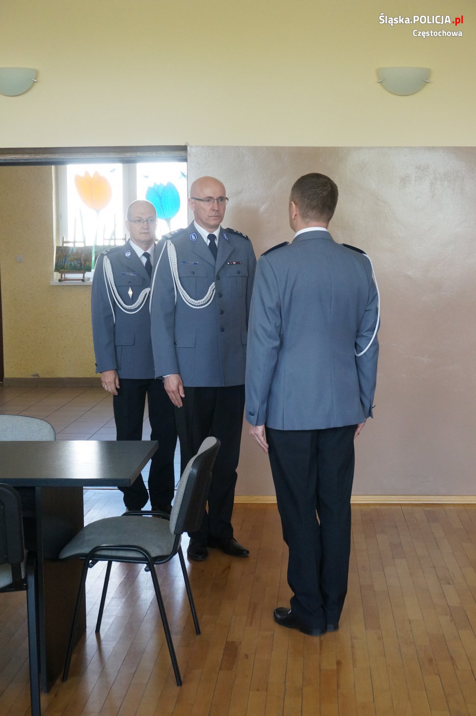 mł.insp. Dariusz Atłasik dokonał uroczystego wprowadzenia Komendanta Komisariatu Policji w Blachowni podinsp. Pawła Wośińskiego, który do tej pory pełnił obowiązki na tym stanowisku. W uroczystości udział wzięli zaproszeni samorządowcy, prokurator rejonowy, policjantki i policjanci oraz pracownicy cywilni.