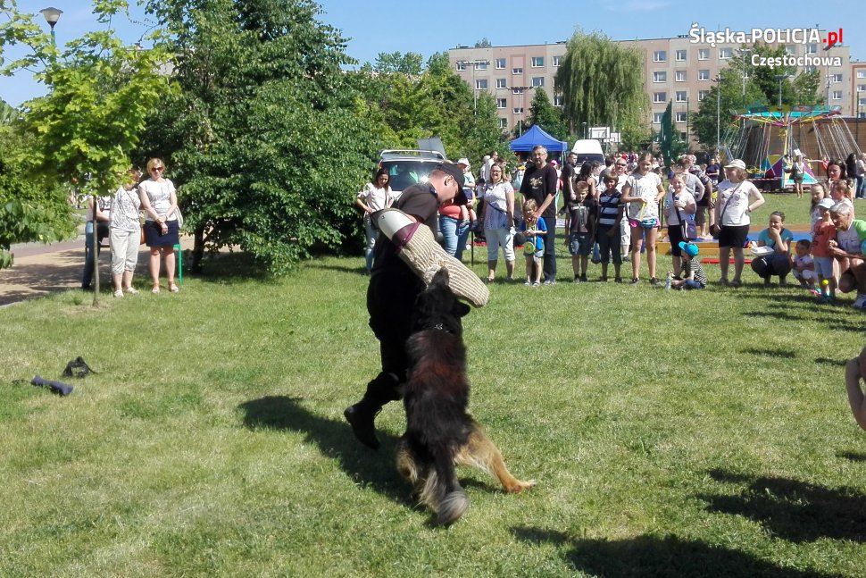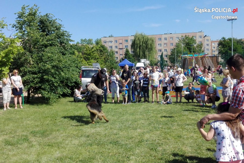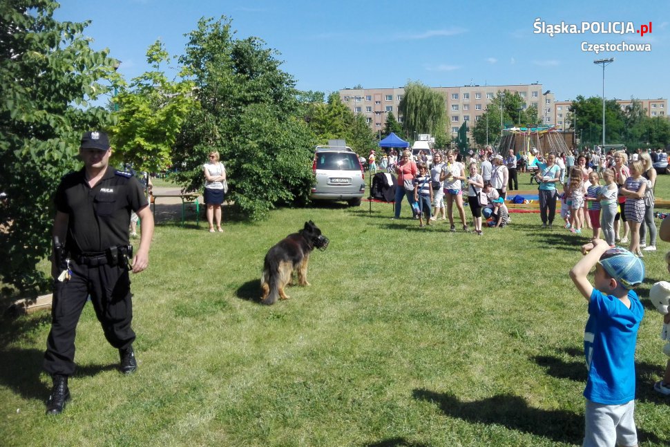W miniony piątek przy ulicy Orkana w Częstochowie odbył się Festyn Integracyjny „Wrzosowiak 2017” pod patronatem Prezydenta Miasta Częstochowy pana Krzysztofa Matyjaszczyka. Spotkanie zorganizowane zostało przez Szkołę Podstawową nr 53 i Gimnazjum nr 18 w Częstochowie. Aktywny udział w imprezie wzięli dzielnicowi z Komisariatu Policji VI w Częstochowie asp. Robert Łapucha, mł. asp. Tomasz Chaliński i mł. asp. Mariusz Cierpiał. Mundurowi rozmawiali z uczestnikami festynu o aplikacji „Moja Komenda” i Krajowej Mapie Zagrożeń Bezpieczeństwa. Poruszali też tematykę związana z bezpieczeństwem podczas wakacji, a zwłaszcza - w myśl kampanii „Kręci mnie bezpieczeństwo nad wodą” - zachowania dzieci i dorosłych nad akwenami wodnymi. Stróże prawa rozdawali też ulotki ostrzegające przed oszustwami „na wnuczka” i „na policjanta”. Na imprezie odbył się też pokaz nowego hybrydowego radiowozu oraz sprzętu policyjnego. Sporą atrakcją był też pokaz umiejętności psa tropiącego, przeprowadzony przez przewodnika psa st. asp. Marka Ładnego.