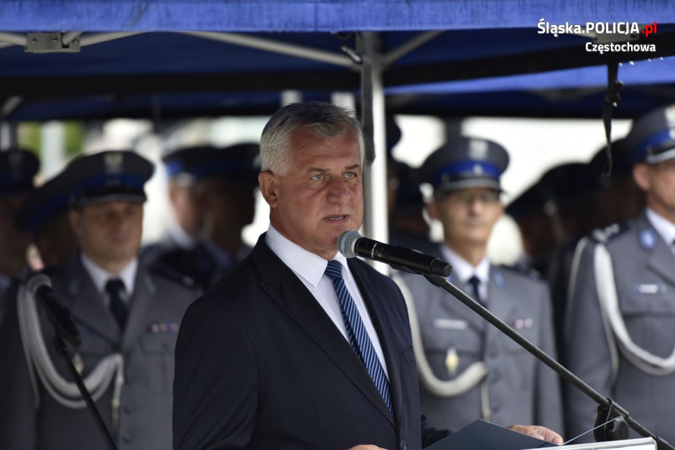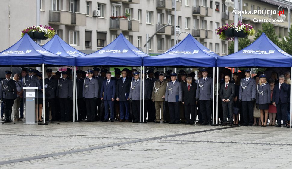Wyższe stopnie otrzymało łącznie 253 funkcjonariuszy z częstochowskiej komendy i 36 z pododdziału prewencji. Uroczystość rozpoczął meldunek złożony przez dowódcę uroczystości podinsp. Tomasza Srokę, a następnie podniesiono flagę państwową i odegrany został Mazurek Dąbrowskiego. W trakcie uroczystości wręczone zostały akty nominacyjne na wyższe stopnie służbowe dla policjantów z Komendy Miejskiej Policji w Częstochowie oraz Samodzielnego Pododdziału Prewencji Policji. Komendant Miejski Policji w Częstochowie mł. insp. Dariusz Atłasik podziękował za poświęcenie w służbie i rzetelne wykonywanie niełatwych obowiązków służbowych. Skierował także życzenia do pracowników cywilnych, emerytów policyjnych, rodzin policjantów, samorządowców, prokuratorów i sędziów, którzy wspierają policjantów na co dzień. Podinsp. Mariusz Krzystyniak podziękował funkcjonariuszom, pracownikom Policji oraz ich rodzinom za codzienną służbę, życząc jednocześnie dalszych sukcesów w służbie oraz powodzenia w życiu osobistym.
