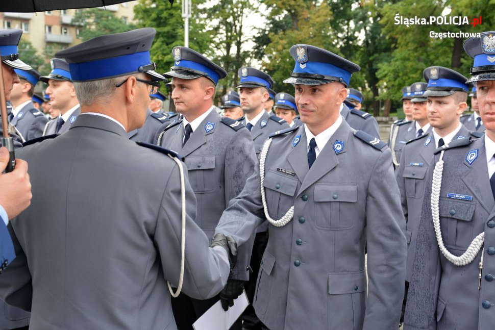 Dzisiaj odbyła się uroczystość wręczenia aktów nominacyjnych na wyższe stopnie służbowe w związku ze Świętem Policji w Częstochowie. Awanse uzyskało 253 policjantów z Komendy Miejskiej Policji w Częstochowie i 36 policjantów z Samodzielnego Pododdziału Prewencji Policji. Stróże prawa otrzymali je z rąk podinsp. Mariusza Krzystyniaka, mł. insp. Dariusza Atłasika i mł. insp. Dariusza Kondasa.