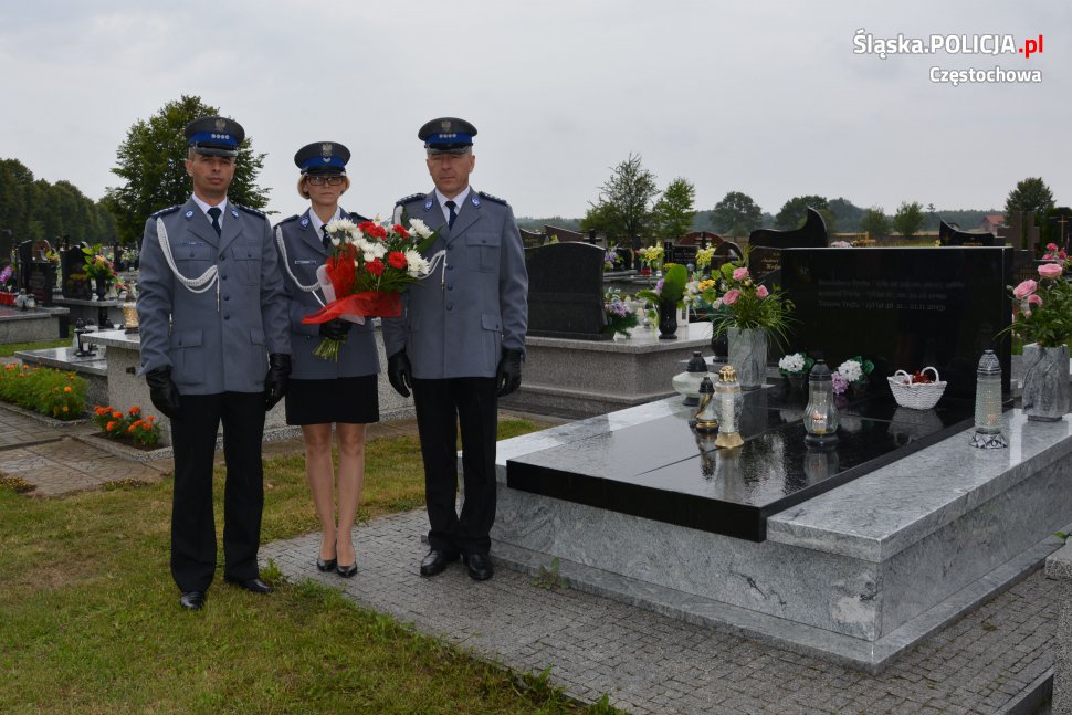 Policjanci z komisariatu w Kłomnicach punktualnie o 10.00 złożyli wieniec na grobie st. post. Tomasza Trejty, który 21.11.2013 roku zginął w wypadku samochodowym podczas służby prowadząc radiowóz.