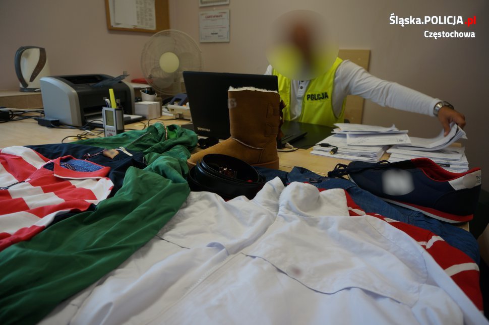 Częstochowscy policjanci zabezpieczyli odzież sygnowaną znakami towarowymi znanych marek. Wstępne ustalenia wskazują, że to podróbki. Wartość oryginalnych produktów sięga ponad 32 tys. złotych. Za wprowadzanie do obrotu podrobionych towarów grozi kara grzywny oraz nawet 2 lata więzienia.