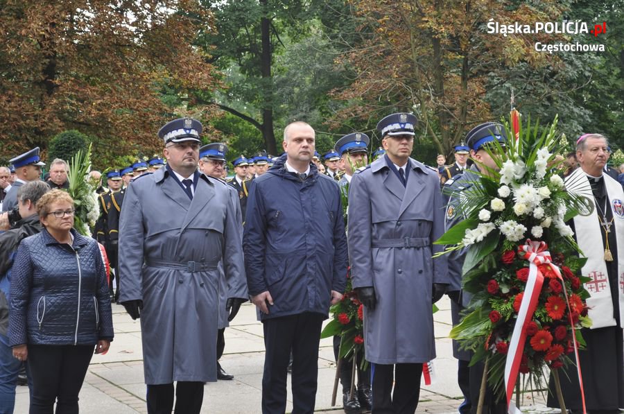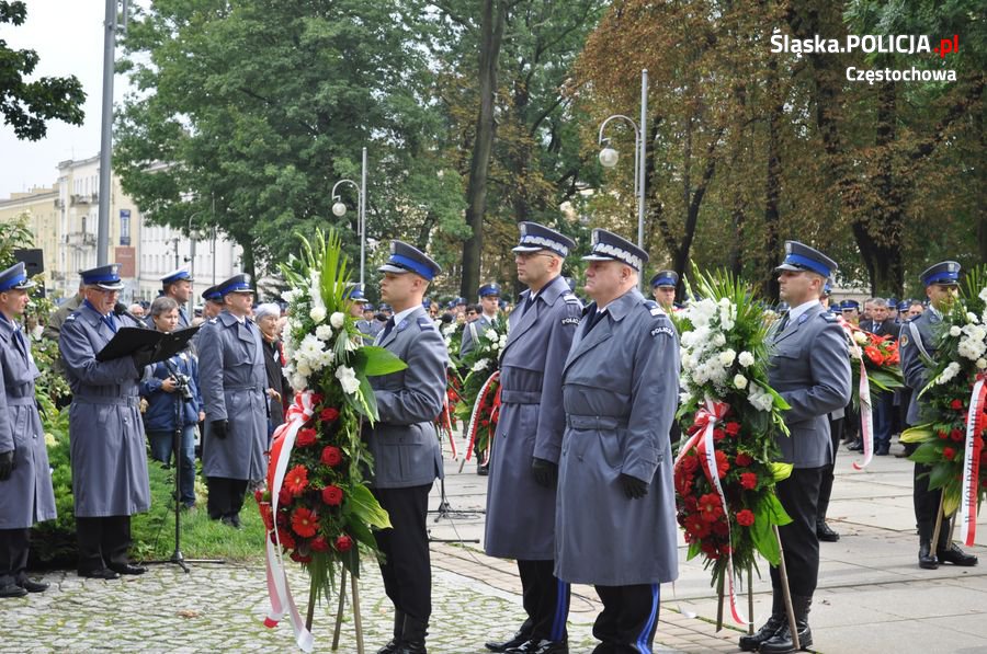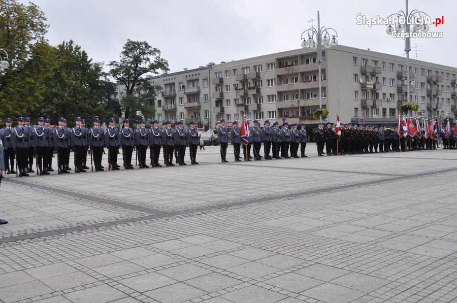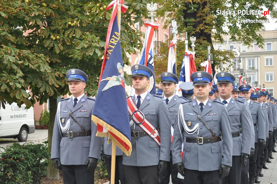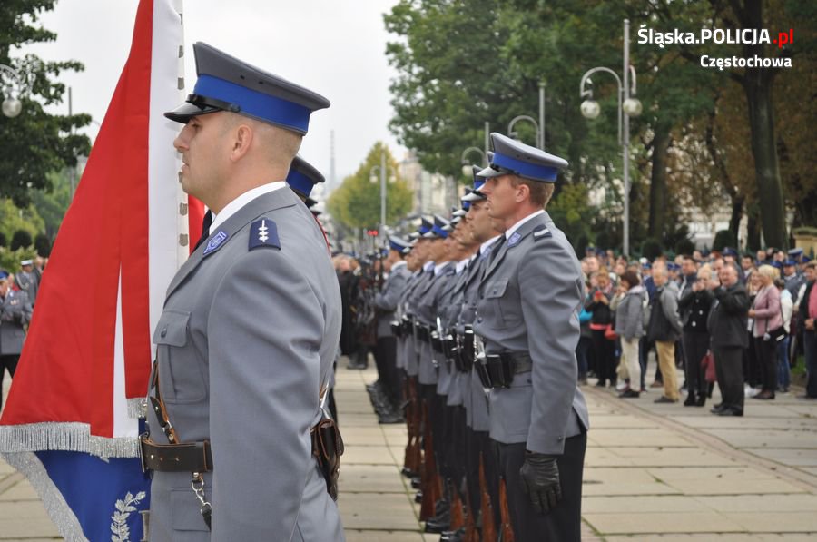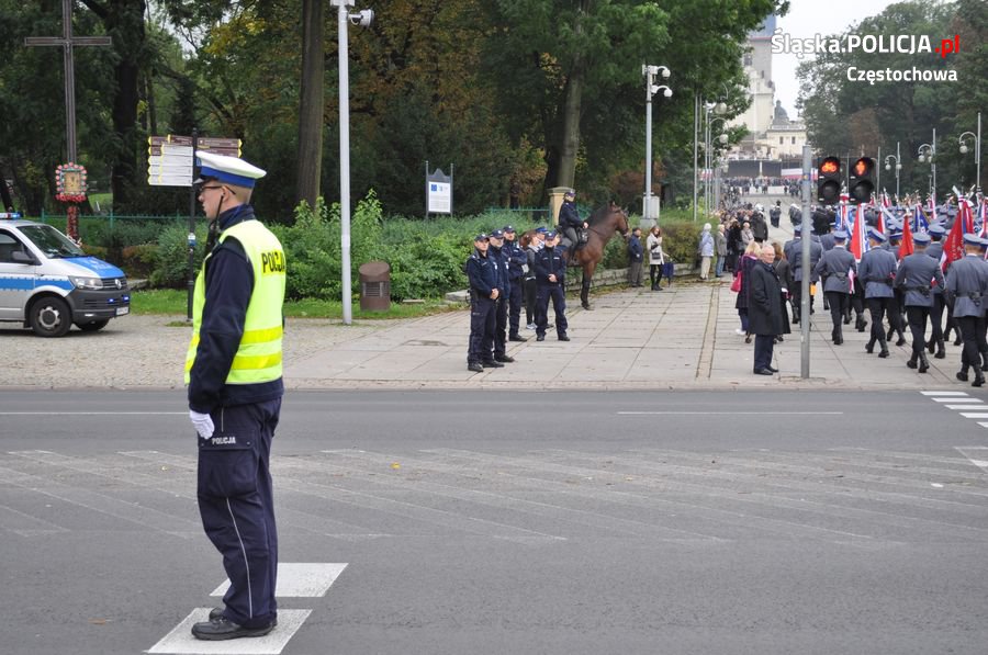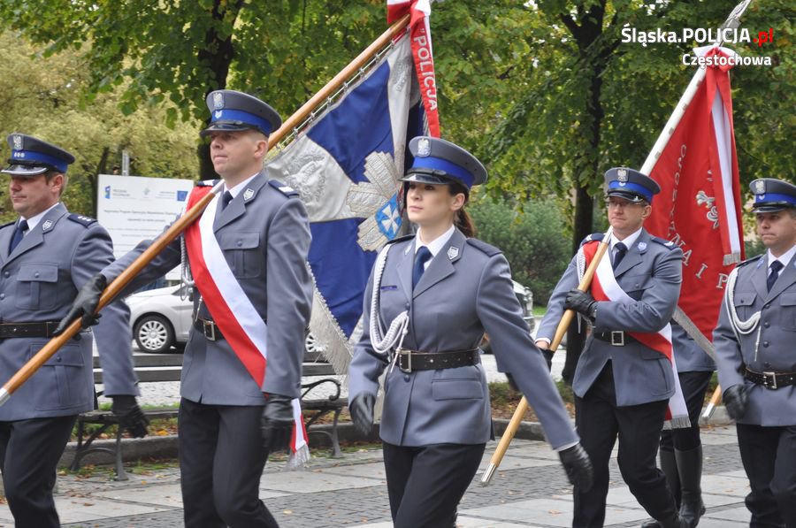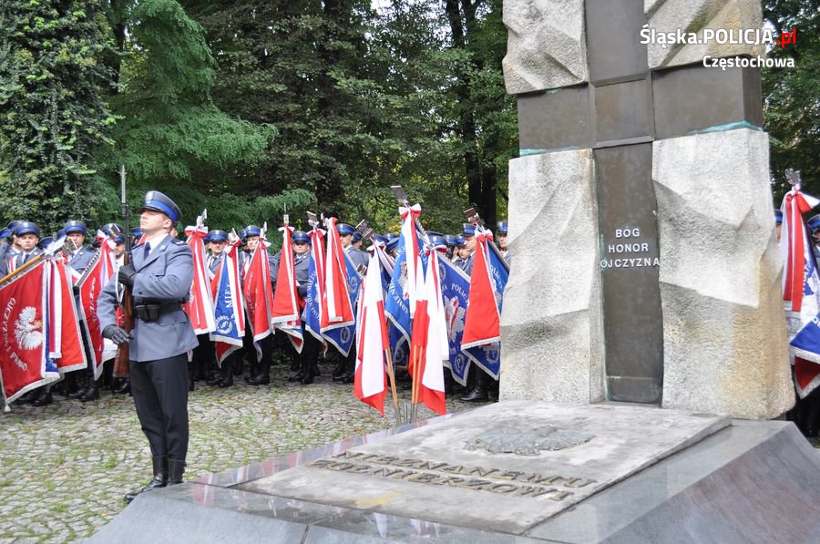Uroczystości rozpoczęły się o 11.30 na Placu Biegańskiego w Częstochowie od występu Orkiestry Reprezentacyjnej Policji. Następnie dowódca uroczystości nadkom. Roman Maciejewski złożył meldunek I Zastępcy Komendanta Głównego nadinsp. Andrzejowi Szymczykowi. Generał przywitał się ze sztandarami oraz dokonał przeglądu pododdziałów. Wyznaczona delegacja złożyła wiązankę kwiatów przy pomniku Józefa Piłsudskiego, gdzie swój posterunek wystawiła Grupa Rekonstrukcji Historycznej. Pielgrzymi ruszyli następnie Aleją Najświętszej Maryi Panny w kierunku Jasnej Góry. Wiązanki kwiatów złożone zostały także przy pomniku Błogosławionego Księdza Jerzego Popiełuszki i przed pomnikiem Nieznanego Żołnierza w Alei Henryka Sienkiewicza, gdzie odczytano Apel Pamięci z okazji 77. rocznicy Zbrodni Katyńskiej. Wyznaczona delegacja wyróżnionych policjantów z częstochowskiej komendy złożyła także kwiaty i zapaliła znicz na Polanie Dębowej – Placu Katyńskim w Częstochowie.
