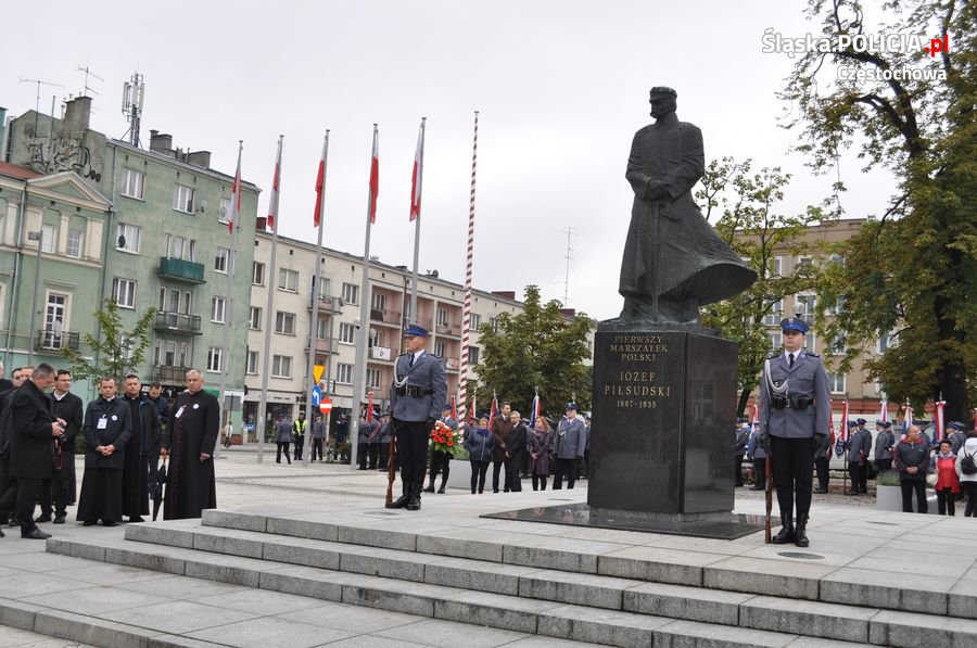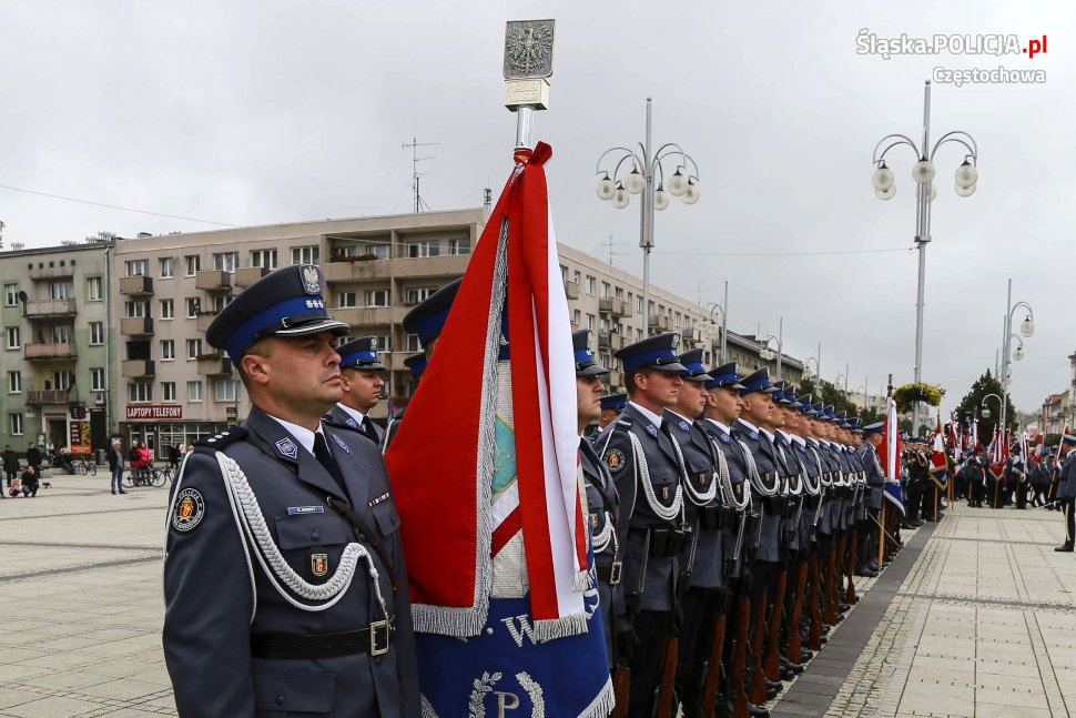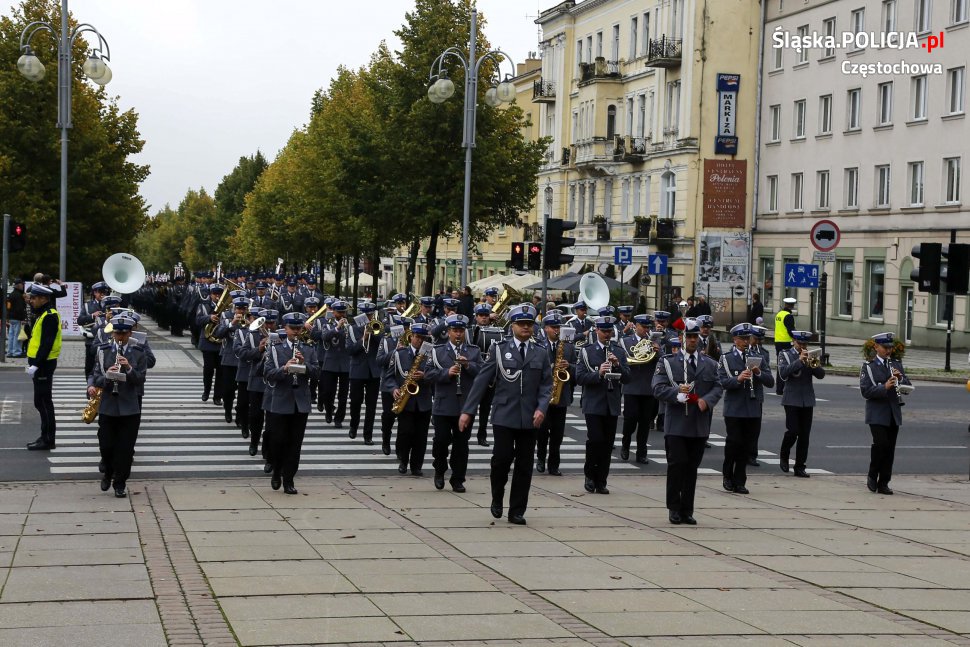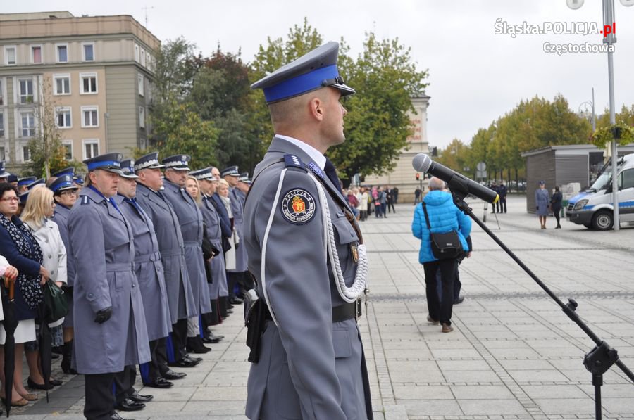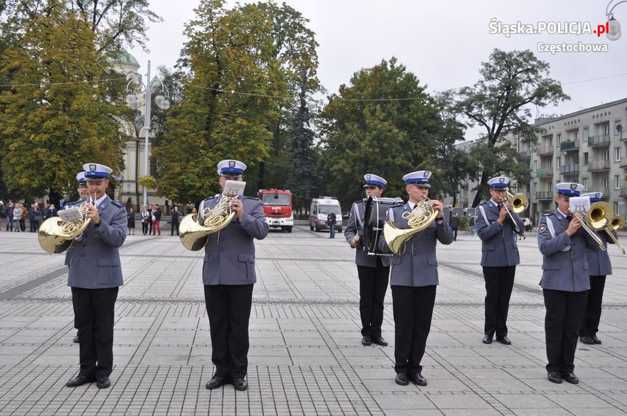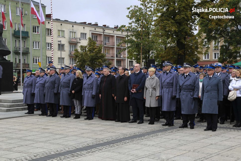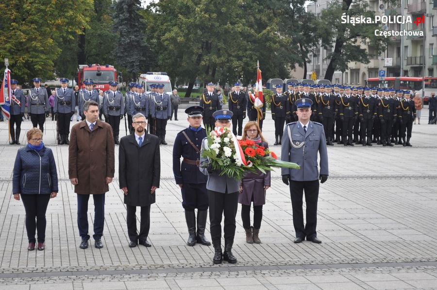Uroczystości rozpoczęły się o 11.30 na Placu Biegańskiego w Częstochowie od występu Orkiestry Reprezentacyjnej Policji. Następnie dowódca uroczystości nadkom. Roman Maciejewski złożył meldunek I Zastępcy Komendanta Głównego nadinsp. Andrzejowi Szymczykowi. Generał przywitał się ze sztandarami oraz dokonał przeglądu pododdziałów. Wyznaczona delegacja złożyła wiązankę kwiatów przy pomniku Józefa Piłsudskiego, gdzie swój posterunek wystawiła Grupa Rekonstrukcji Historycznej. Pielgrzymi ruszyli następnie Aleją Najświętszej Maryi Panny w kierunku Jasnej Góry. Wiązanki kwiatów złożone zostały także przy pomniku Błogosławionego Księdza Jerzego Popiełuszki i przed pomnikiem Nieznanego Żołnierza w Alei Henryka Sienkiewicza, gdzie odczytano Apel Pamięci z okazji 77. rocznicy Zbrodni Katyńskiej. Wyznaczona delegacja wyróżnionych policjantów z częstochowskiej komendy złożyła także kwiaty i zapaliła znicz na Polanie Dębowej – Placu Katyńskim w Częstochowie.
