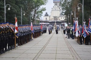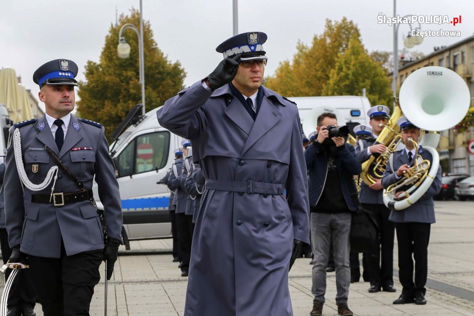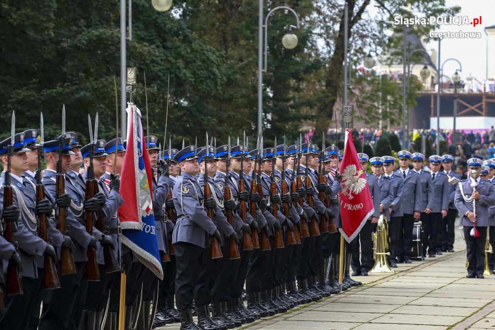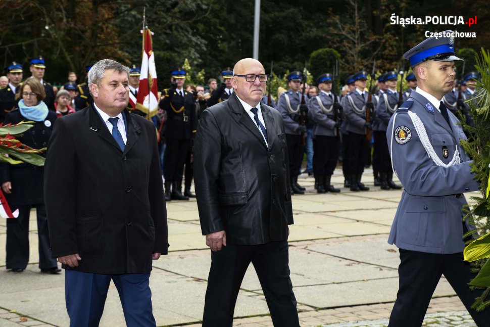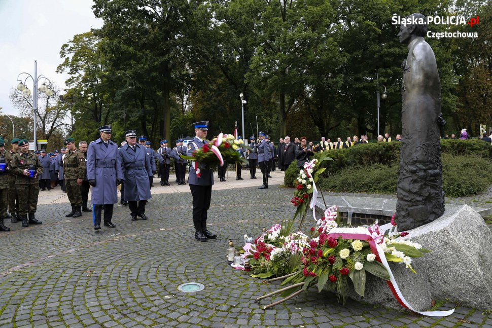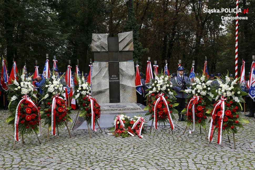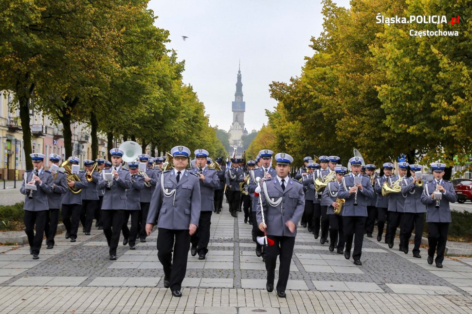Uroczystości rozpoczęły się o 11.30 na Placu Biegańskiego w Częstochowie od występu Orkiestry Reprezentacyjnej Policji. Następnie dowódca uroczystości nadkom. Roman Maciejewski złożył meldunek I Zastępcy Komendanta Głównego nadinsp. Andrzejowi Szymczykowi. Generał przywitał się ze sztandarami oraz dokonał przeglądu pododdziałów. Wyznaczona delegacja złożyła wiązankę kwiatów przy pomniku Józefa Piłsudskiego, gdzie swój posterunek wystawiła Grupa Rekonstrukcji Historycznej. Pielgrzymi ruszyli następnie Aleją Najświętszej Maryi Panny w kierunku Jasnej Góry. Wiązanki kwiatów złożone zostały także przy pomniku Błogosławionego Księdza Jerzego Popiełuszki i przed pomnikiem Nieznanego Żołnierza w Alei Henryka Sienkiewicza, gdzie odczytano Apel Pamięci z okazji 77. rocznicy Zbrodni Katyńskiej. Wyznaczona delegacja wyróżnionych policjantów z częstochowskiej komendy złożyła także kwiaty i zapaliła znicz na Polanie Dębowej – Placu Katyńskim w Częstochowie.