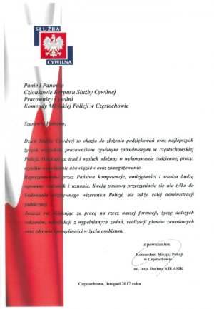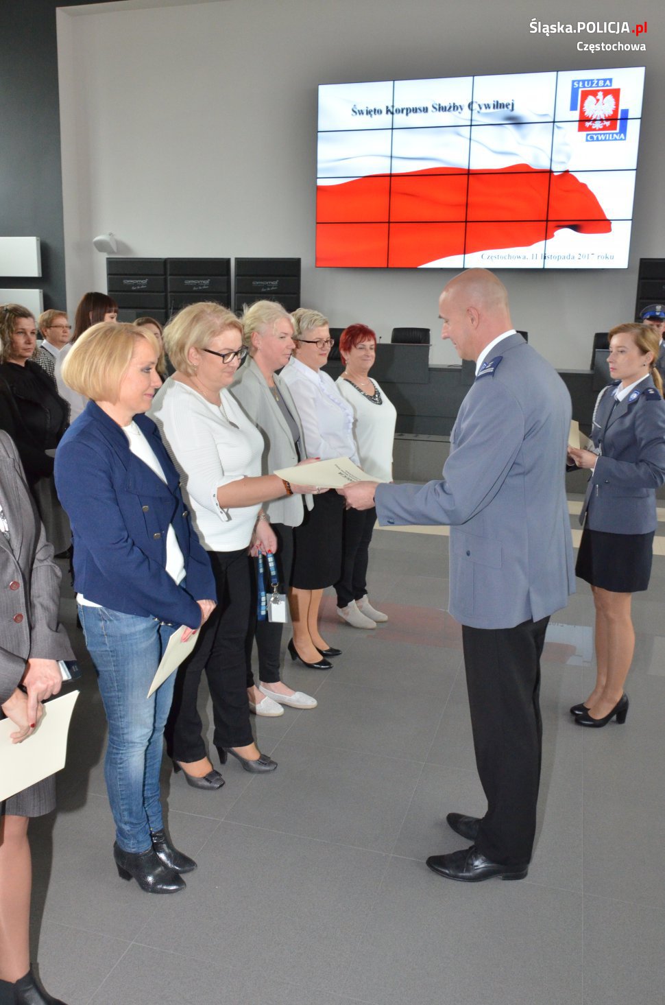 Święto służby cywilnej było okazją do wręczenia przez Kierownictwo Komendy Miejskiej Policji w Częstochowie wyróżnień, aby w ten sposób wyrazić uznanie dla szczególnych zasług oraz wzorowego wypełniania obowiązków służbowych przez pracowników cywilnych. Dzisiejsze obchody były więc okazją do wyróżnienia pracowników cywilnych za ich rzetelną pracę i przyczynianie się do lepszego postrzegania pracy komendy miejskiej oraz komisariatów zarówno w Częstochowie jak i w powiecie.