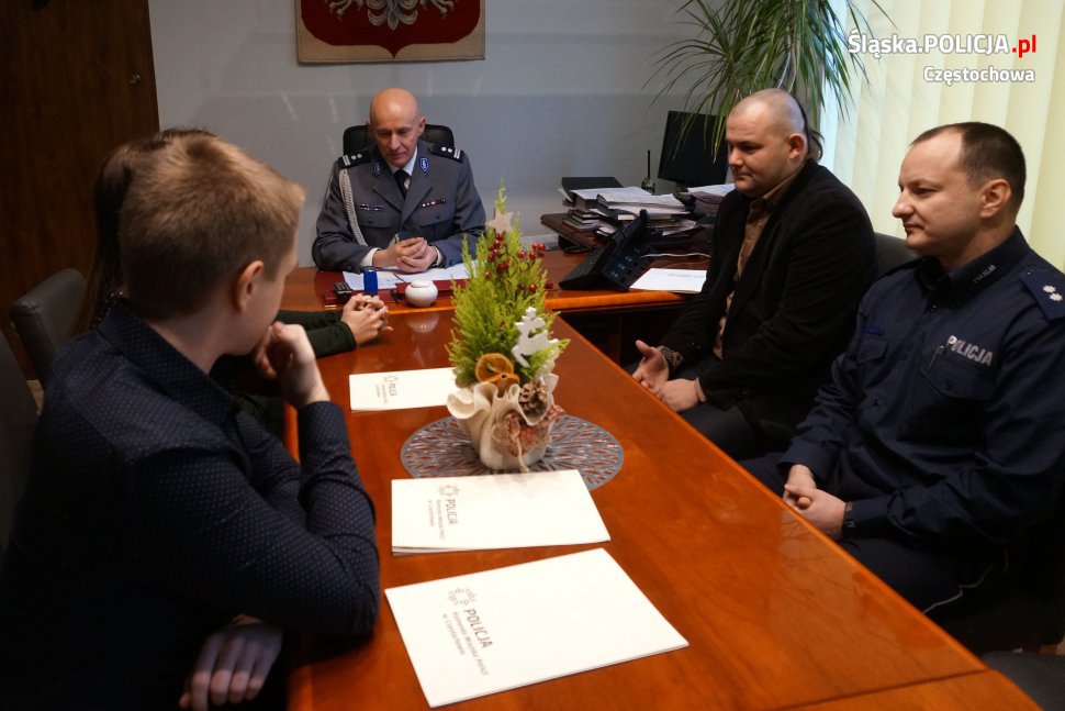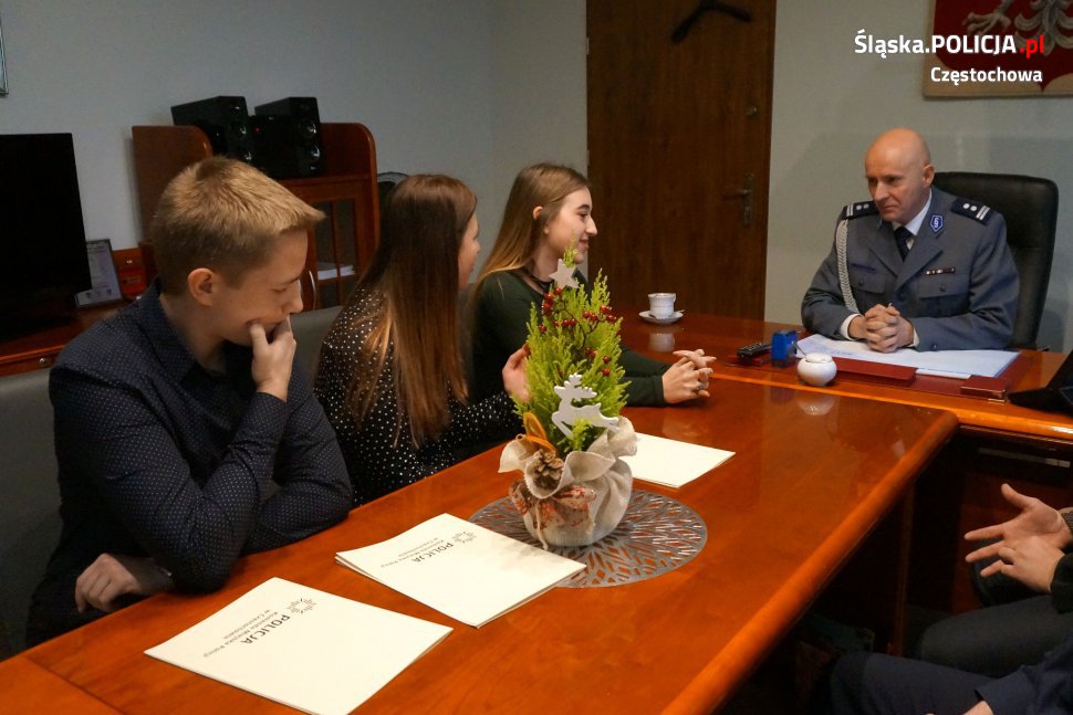 Wczoraj Komendant Miejski Policji w Częstochowie młodszy inspektor Dariusz Atłasik, w towarzystwie pełniącego obowiązki zastępcy naczelnika wydziału prewencji podkomisarza Jacka Zielińskiego, spotkał się z młodymi ludźmi, którzy wykazali się ogromną odwagą i nie pozostali obojętni na wołanie o pomoc.