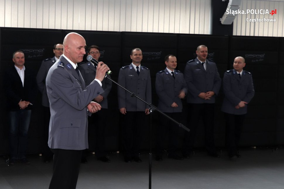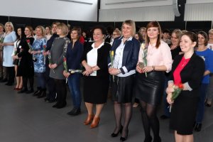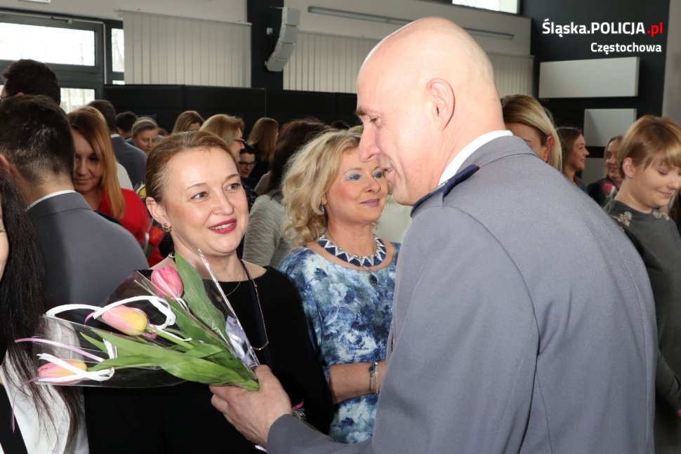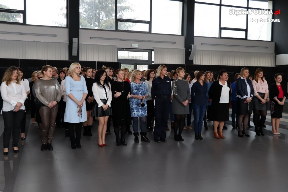 Komendant Miejski Policji w Częstochowie mł. insp. Dariusz Atłasik wraz z zastępcami - podinsp. Mariuszem Strzeleckim i nadkom. Dariuszem Kiedrzynem oraz przedstawicielami kadry kierowniczej złożyli dzisiaj kobietom pracującym w częstochowskiej komendzie serdeczne życzenia z okazji Dnia Kobiet.