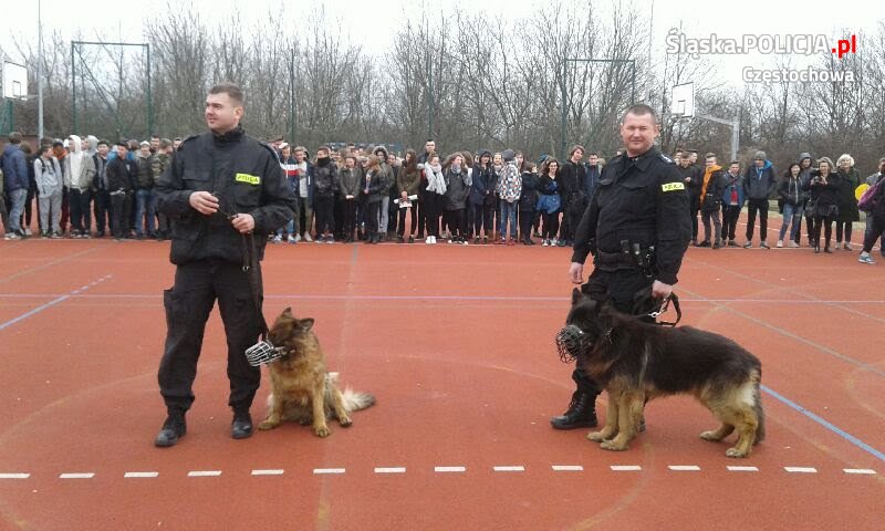 Psy służbowe, które na co dzień patrolują częstochowskie ulice, zaprezentowały swoje posłuszeństwo. Każdy pies wraz ze swoim przewodnikiem tworzy silny duet. Jest to bardzo istotne w sytuacji zagrożenia bezpieczeństwa innych osób. Pies służbowy może skutecznie obezwładnić niebezpiecznego przestępcę, co można było zaobserwować podczas pokazu. Psy służbowe towarzyszące policjantom muszą posiadać też odpowiednie umiejętności i cechy, które są niezbędne podczas wykonywanych zadań.