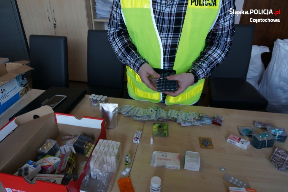 Policjanci z Wydziału do walki z Przestępczością Gospodarczą Komendy Miejskiej Policji w Częstochowie namierzyli i zatrzymali 27-latka, podejrzanego o oferowanie do sprzedaży farmaceutyków za pośrednictwem internetu. Przeszło 20 rodzajów różnych substancji, w tym tabletki i gotowe roztwory do wstrzykiwań, śledczy znaleźli w samochodzie i w domu podejrzanego, w jednej z podczęstochowskich miejscowości. Mężczyzna usłyszał zarzut przechowania w celu wprowadzenia do obrotu produktów leczniczych, nie posiadając pozwolenia na dopuszczenie ich do obrotu. Grozi za to do 2 lat więzienia. Śledczy, pod nadzorem prokuratury, ustalają szczegóły sprawy.