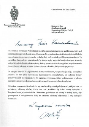 Uroczystości uświetnił koncert orkiestry z Komendy Wojewódzkiej Policji w Katowicach oraz przemarsz członków Zespołu Policji Konnej Komendy Miejskiej Policji w Częstochowie.