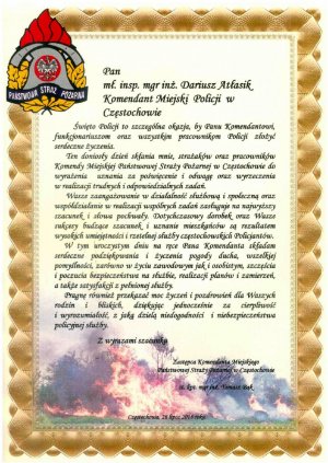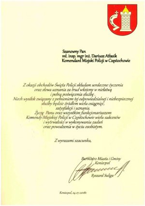 Wyższe stopnie otrzymało łącznie 248 funkcjonariuszy z częstochowskiej komendy i 31 z pododdziału prewencji. Uroczystość rozpoczął meldunek złożony przez dowódcę uroczystości podinsp. Tomasza Srokę, a następnie podniesiono flagę państwową i odegrany został Mazurek Dąbrowskiego. W trakcie uroczystości wręczone zostały akty nominacyjne na wyższe stopnie służbowe dla policjantów z Komendy Miejskiej Policji w Częstochowie oraz Samodzielnego Pododdziału Prewencji Policji. Komendant Miejski Policji w Częstochowie mł. insp. Dariusz Atłasik podziękował za poświęcenie w służbie i rzetelne wykonywanie niełatwych obowiązków służbowych. Skierował także życzenia do pracowników cywilnych, emerytów policyjnych, rodzin policjantów, parlamentarzystów, samorządowców, prokuratorów i sędziów oraz wielu innych osób, które wspierają policjantów na co dzień. Insp. Piotr Kucia podziękował funkcjonariuszom, pracownikom Policji oraz ich rodzinom za codzienną służbę, życząc jednocześnie dalszych sukcesów w służbie oraz powodzenia w życiu osobistym.