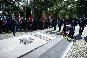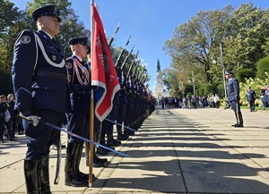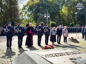 Następnie nadinspektor Roman Kuster – Zastępca Komendanta Głównego Policji wspólnie nadinspektorem dr. Rafałem Kochańczykiem, nadinspektorem dr. Tomaszem Michułką oraz Komendantem Wojewódzkim Policji w Katowicach nadinspektorem Mariuszem Krzystyniakiem złożyli wiązankę kwiatów pod pomnikiem Marszałka Józefa Piłsudskiego.