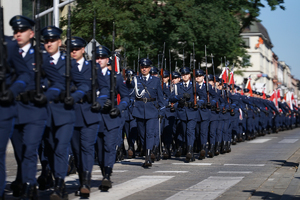 Kwiaty pod pomnikiem pierwszego Marszałka Polski złożyli również przedstawiciele policyjnych związków zawodowych NSZZ, Stowarzyszenia „Rodzina Policyjna 1939 r.”, Stowarzyszenia Federacji Służb Mundurowych Rzeczypospolitej Polskiej oraz JE ksiądz biskup Wiesław Lechowicz.