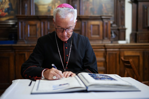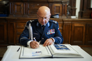 Po uroczystości nadinspektor Roman Kuster – Zastępca Komendanta Głównego Policji i JE ksiądz biskup Wiesław Lechowicz oraz młodszy inspektor Sławomir Koniuszy - Wiceprzewodniczący Zarządu Głównego NSZZ Policjantów, dokonali wpisu do księgi pamiątkowej Komendy Miejskiej Policji w Częstochowie.