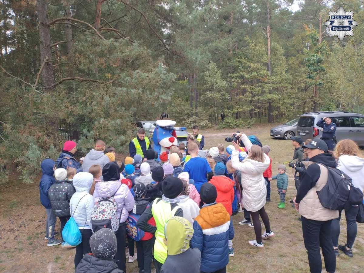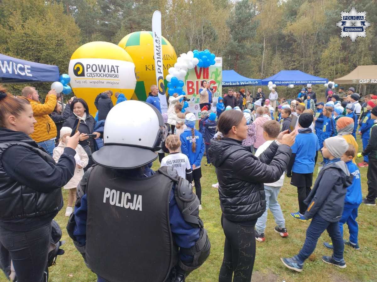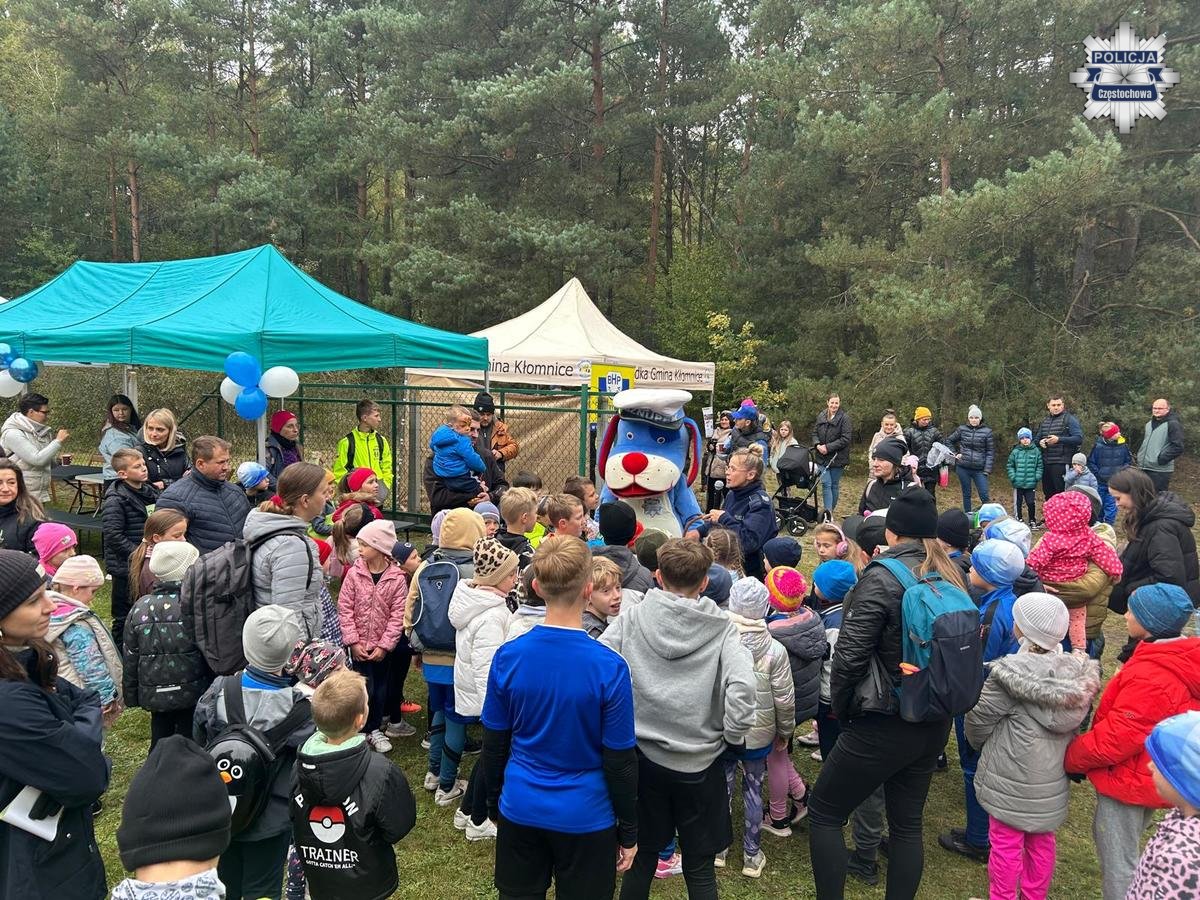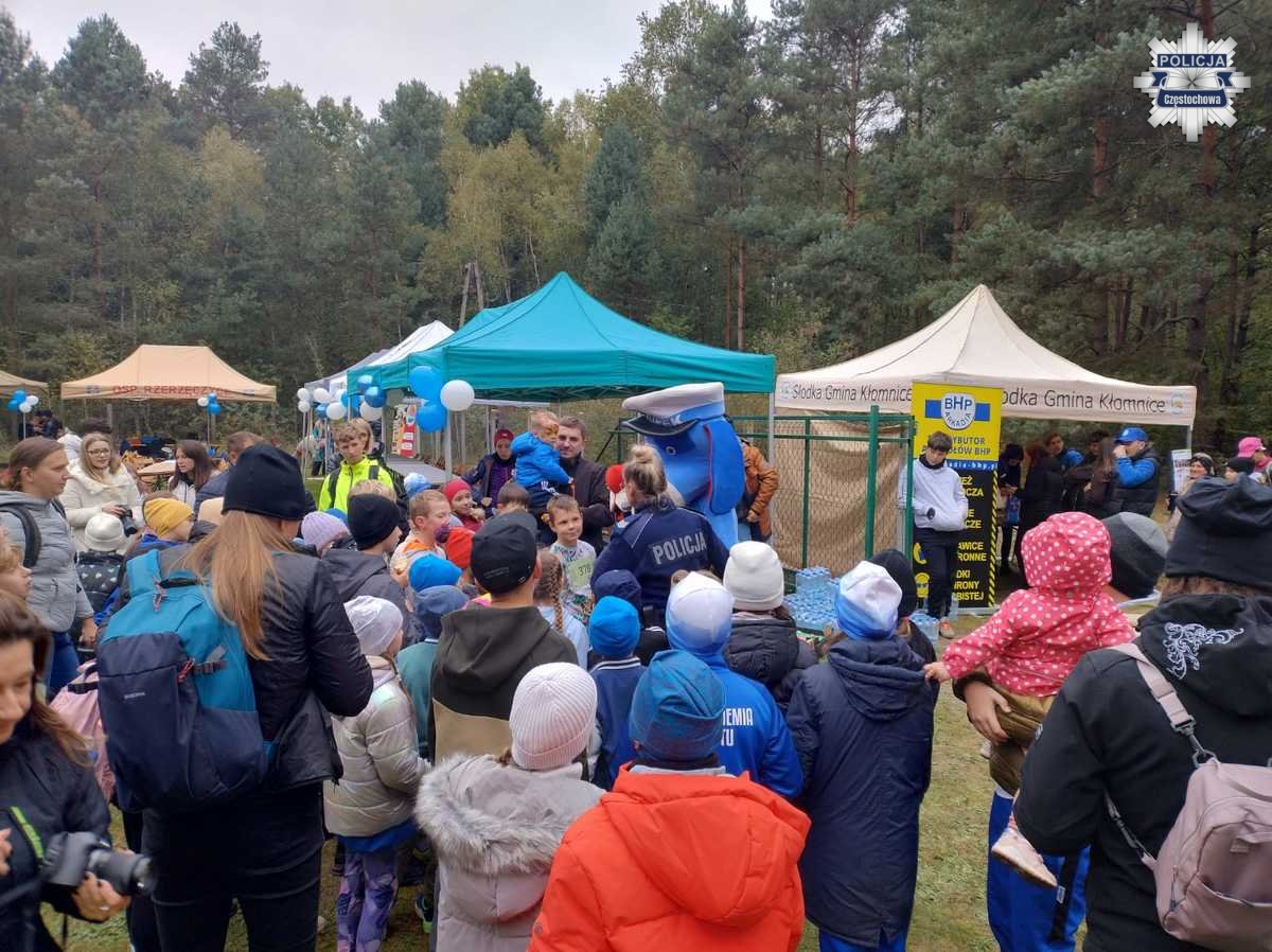 Dlatego dzielnicowi z Kłomnic sierż. szt. Aneta Saternus i sierż. szt. Sergiusz Nowak przeprowadzili prelekcję wśród dzieci i młodzieży na temat szeroko pojętego bezpieczeństwa. A sierżant Damian Przygoda i sierżant Adrian Ryszczyk z częstochowskiej drogówki, mówili o bezpiecznych zachowaniach na drodze. Mundurowi zachęcali i młodzież i dorosłych do używania elementów odblaskowych szczególnie o tej porze roku, gdy warunki pogodowe są zmienne, szybciej zapada zmrok, a widoczność na drodze pogarsza się. Uczyli bezpiecznych zachowań nie tylko na drodze ale także w internecie i w życiu codziennym. Dzielnicowym towarzyszyła maskotka Śląskiej Policji- Sznupek, którego dzieci uwielbiają. Każdy mógł się do niego przytulić i zrobić pamiątkowe zdjęcie.
