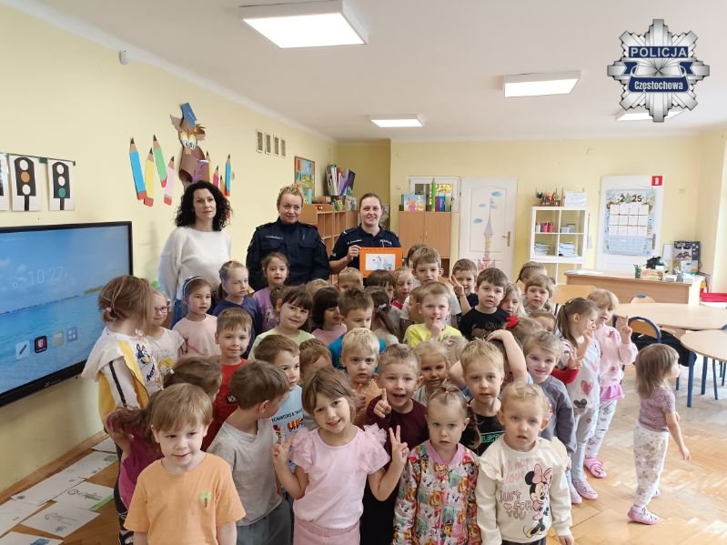 Jak bezpiecznie poruszać się po drogach, bawić się na podwórku czy w przedszkolu oraz jak wezwać pomoc, gdy ktoś jej potrzebuje dowiedziały się przedszkolaki Miejskiego Przedszkola nr 17 im. Siedmiu Krasnoludków, których odwiedziły dzielnicowe z częstochowskiej „czwórki”.
