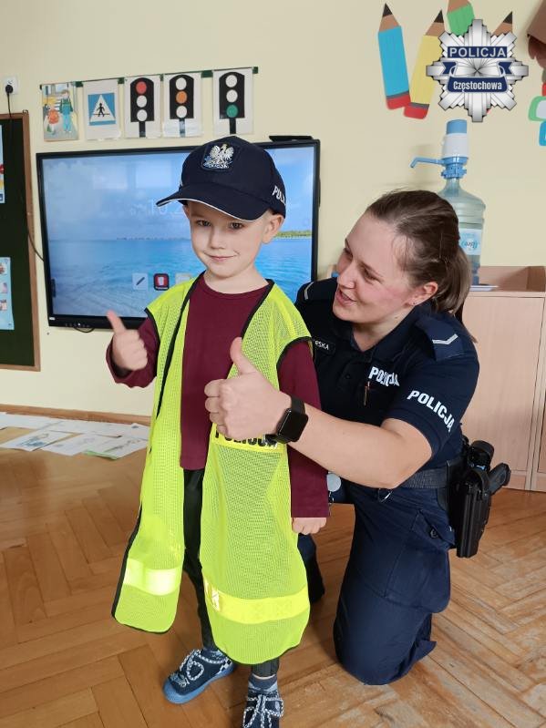 Dzielnicowe z częstochowskiej „czwórki” odwiedzili przedszkolaków z w Częstochowie. W czasie spotkania asp. Katarzyna Krawczyk i sierż. Karolina Stolarska w łatwy i przystępny sposób uczyły dzieci, jak bezpiecznie bawić się z kolegami i koleżankami w przedszkolu, czy na podwórku oraz jak wezwać pomoc, gdy ktoś jej potrzebuje. Mundurowe część spotkania poświęciły również na omówienie głównych zasad bezpiecznego poruszania się po drogach. Policjantki przekazaną wiedzę teoretyczną sprawdzali w praktyce, poprzez ćwiczenia i pokazy, które wykonywały wspólnie z dziećmi. Przedszkolaki każdorazowo wykazywali się ogromną wiedzą i bezbłędnie odpowiadali na zadawane przez policjantki pytania. Mundurowe rozmawiały również o swojej służbie, a także prezentowały im sprzęt, którym posługują się na co dzień. Pokaz ten wzbudził dużo pozytywnych emocji i każdy uczeń chciał wypróbować swoich sił jako policjant i przymierzyć policyjną czapkę.