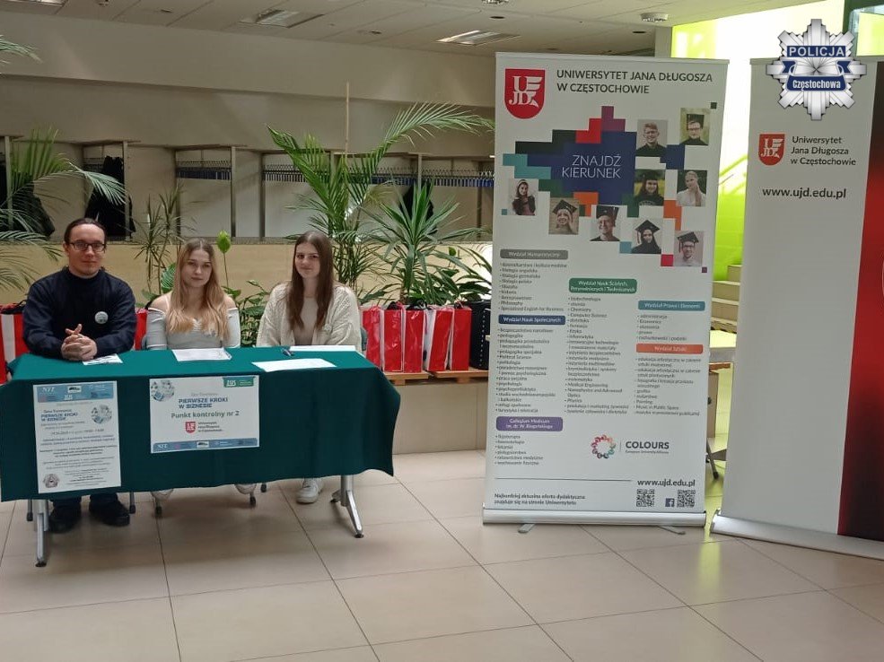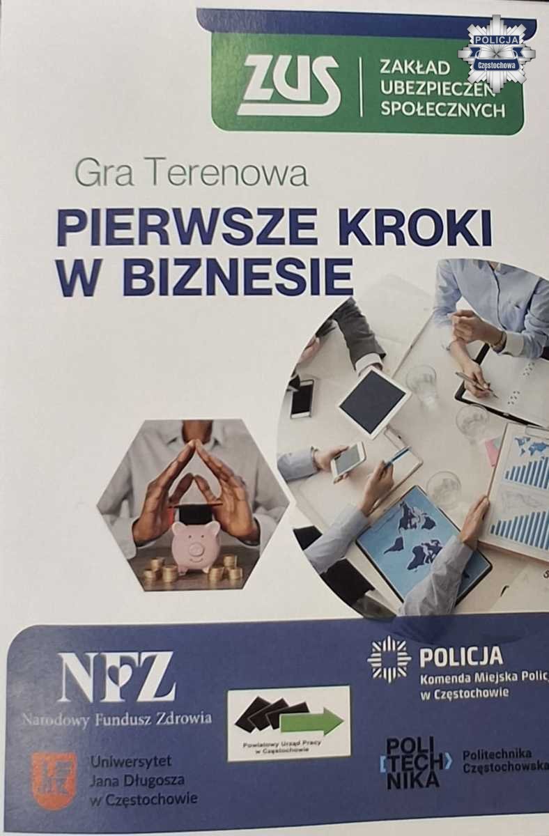 Mundurowi z Komendy Miejskiej Policji w Częstochowie wzięli udział w wyjątkowej inicjatywie edukacyjnej pod nazwą „Pierwsze kroki w biznesie”, zorganizowanej wspólnie przez Zakład Ubezpieczeń Społecznych Oddział w Częstochowie, Komendę Miejską Policji w Częstochowie, Politechnikę Częstochowską, UJD w Częstochowie, Narodowy Fundusz Zdrowia w Częstochowie oraz Powiatowy Urząd Pracy w Częstochowie.