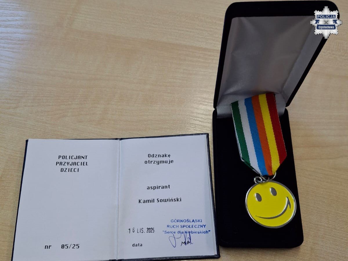 Częstochowski profilaktyk asp. Kamil Sowiński został wyróżniony odznaką „Policjant Przyjaciel Dzieci”. Uhonorowanie przyznano za wieloletnie zaangażowanie w organizowane przez niego akcje pomocowe na rzecz dzieci i młodzieży. Wyróżnienie wręczyli przedstawiciele Górnośląskiego Ruchu Społecznego oraz inicjatywy „Serce dla Niebieskich"