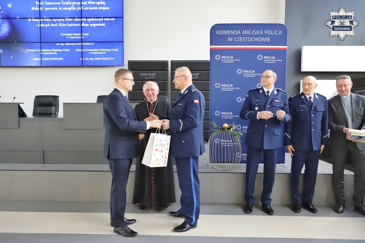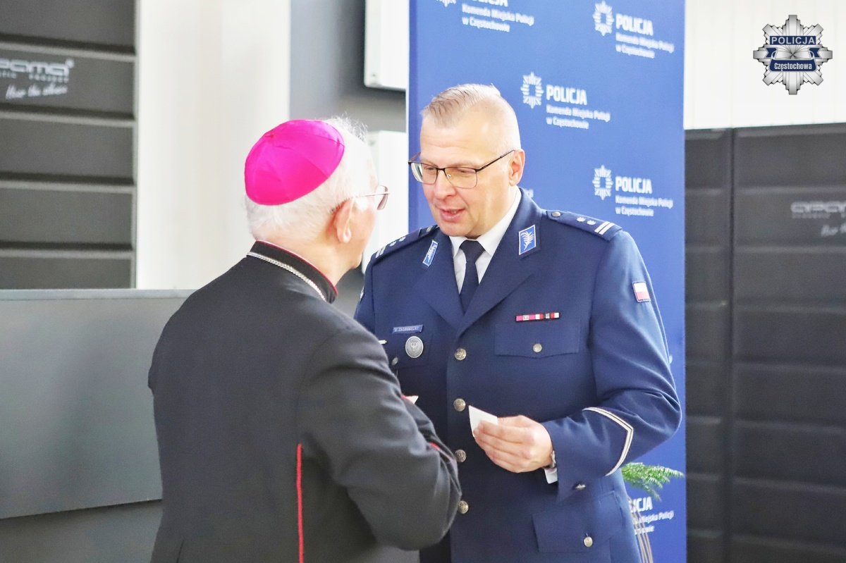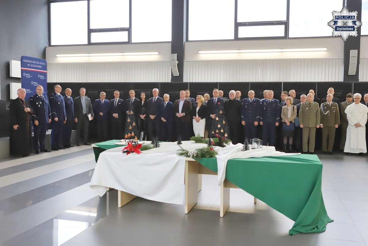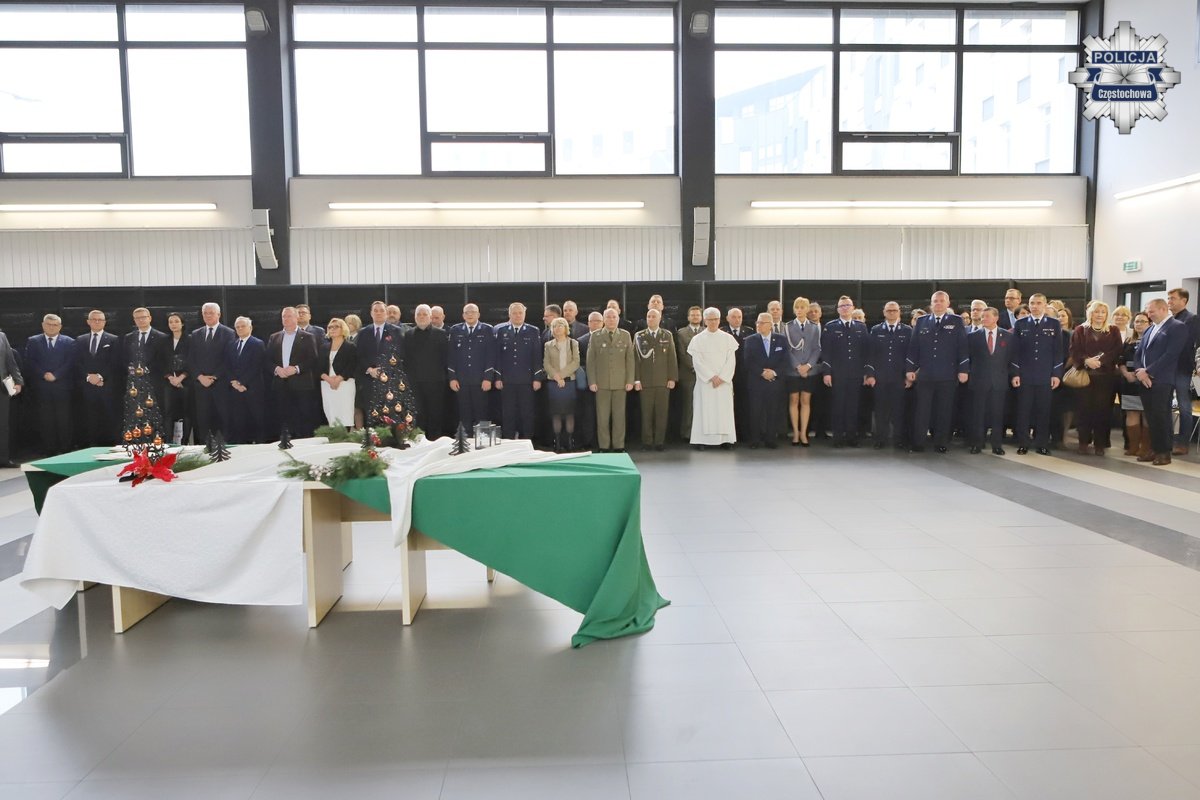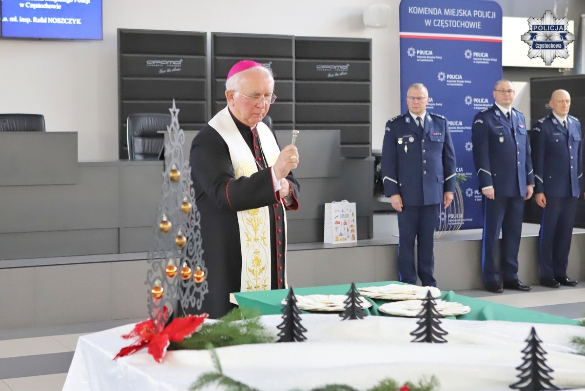Po przemówieniach kapelan częstochowskiej policji - ksiądz Michał Wieczorek odczytał ewangelię, a Jego Ekscelencja Ksiądz Arcybiskup Metropolita Częstochowski Wacław Depo pobłogosławił opłatek, którym na zakończenie symbolicznie podzielili się uczestnicy spotkania.