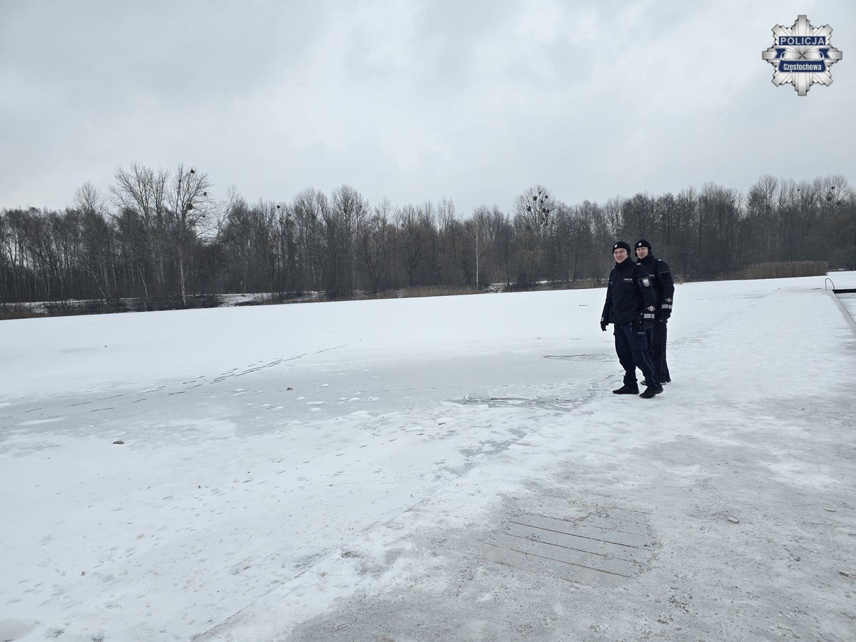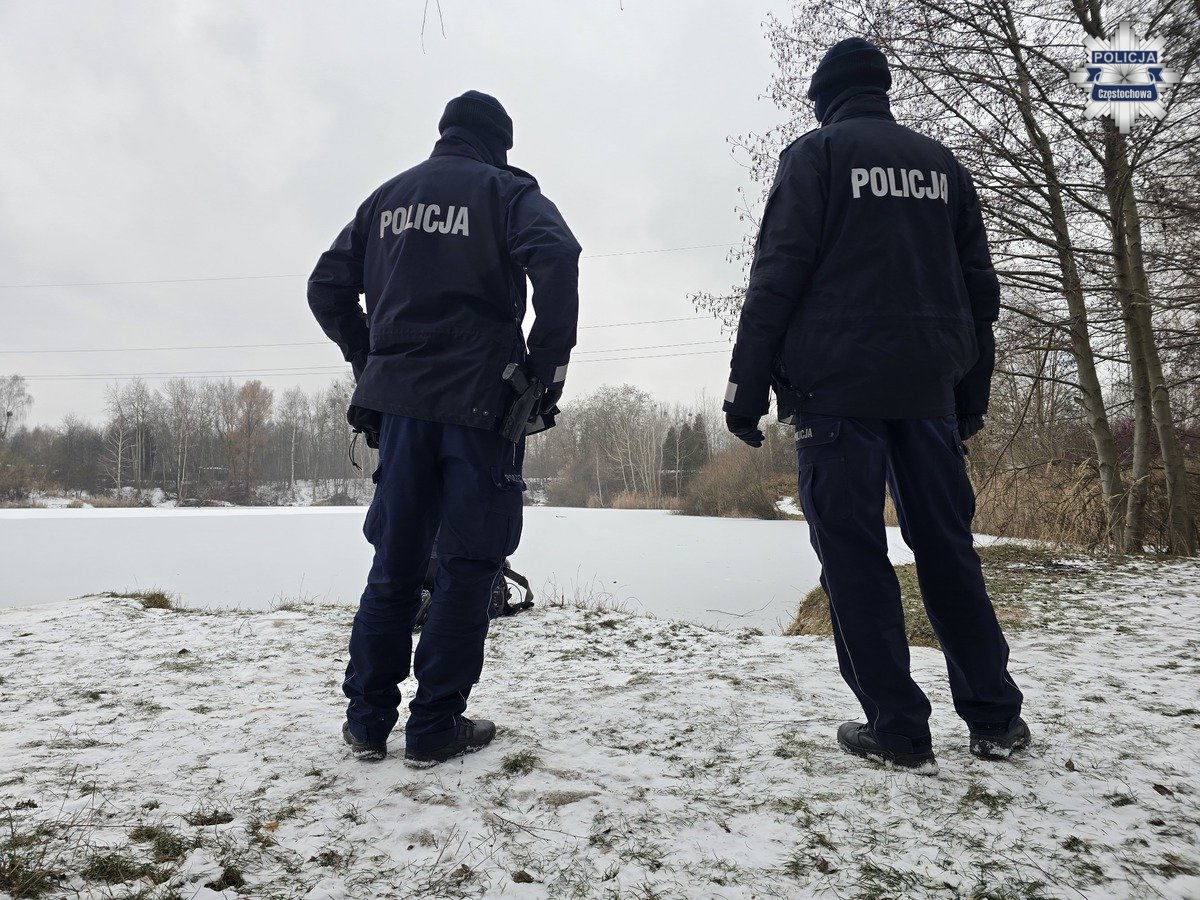 Częstochowscy dzielnicowi z Komisariatu Policji I sprawdzają czy w pobliżu zbiorników wodnych nie ma osób, a szczególnie dzieci, które być może myślą, że zamarznięty staw, to lodowisko...