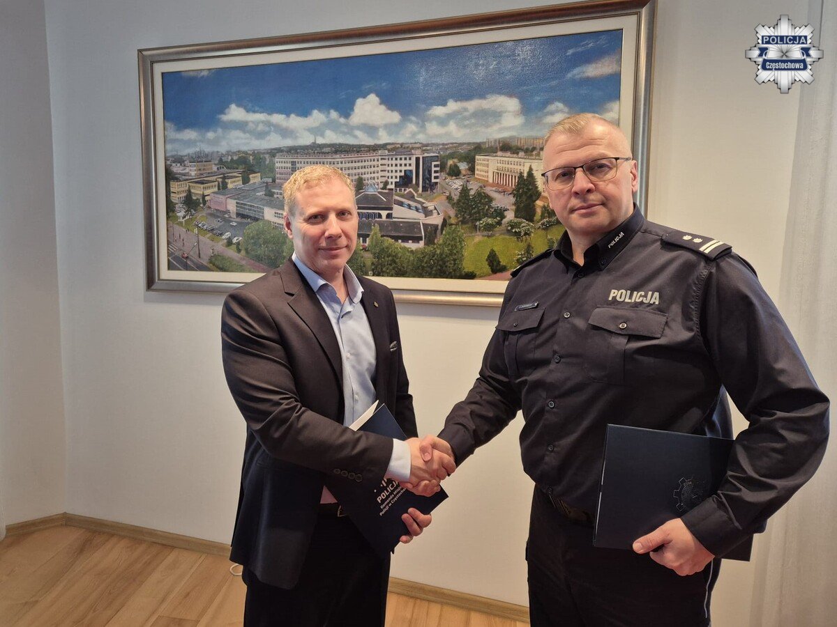 Dzisiaj Komendant Miejski Policji w Częstochowie młodszy inspektor Sławomir Zagrobelny podpisał porozumienie zawarte pomiędzy Komendą Miejską Policji w Częstochowie, a Rektorem Politechniki w Częstochowie doktorem habilitowanym Markiem Warzechą.