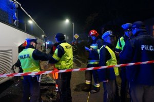 Śledczy z częstochowskiego wydziału kryminalnego, wspólnie z prokuratorem, wyjaśniają przyczyny i okoliczności tragicznego wypadku, do którego doszło w Blachowni. Ford mondeo zderzył się z autokarem. Śmierć na miejscu poniósł kierujący i pasażer z forda.