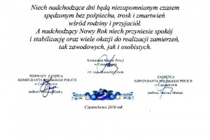 Z okazji nadchodzących Świąt Bożego Narodzenia wszystkim Policjantkom, Policjantom, Pracownikom Cywilnym, Emerytom i Rencistom oraz Waszym Rodzinom składamy najserdeczniejsze życzenia zdrowia oraz wszelkiej pomyślności.